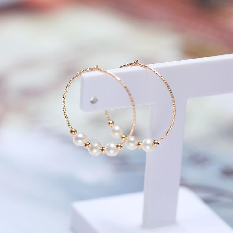 妙语 4-4.5mm圆珠强光淡水珍珠一款多戴耳环 14K注金【A356】