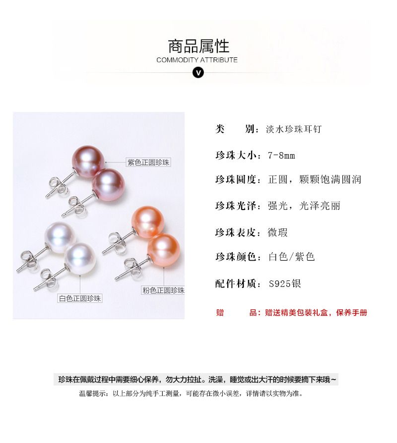 商品名称:至简 S925银淡水珍珠耳钉正圆素钉 媲美akoya耳环女耳饰