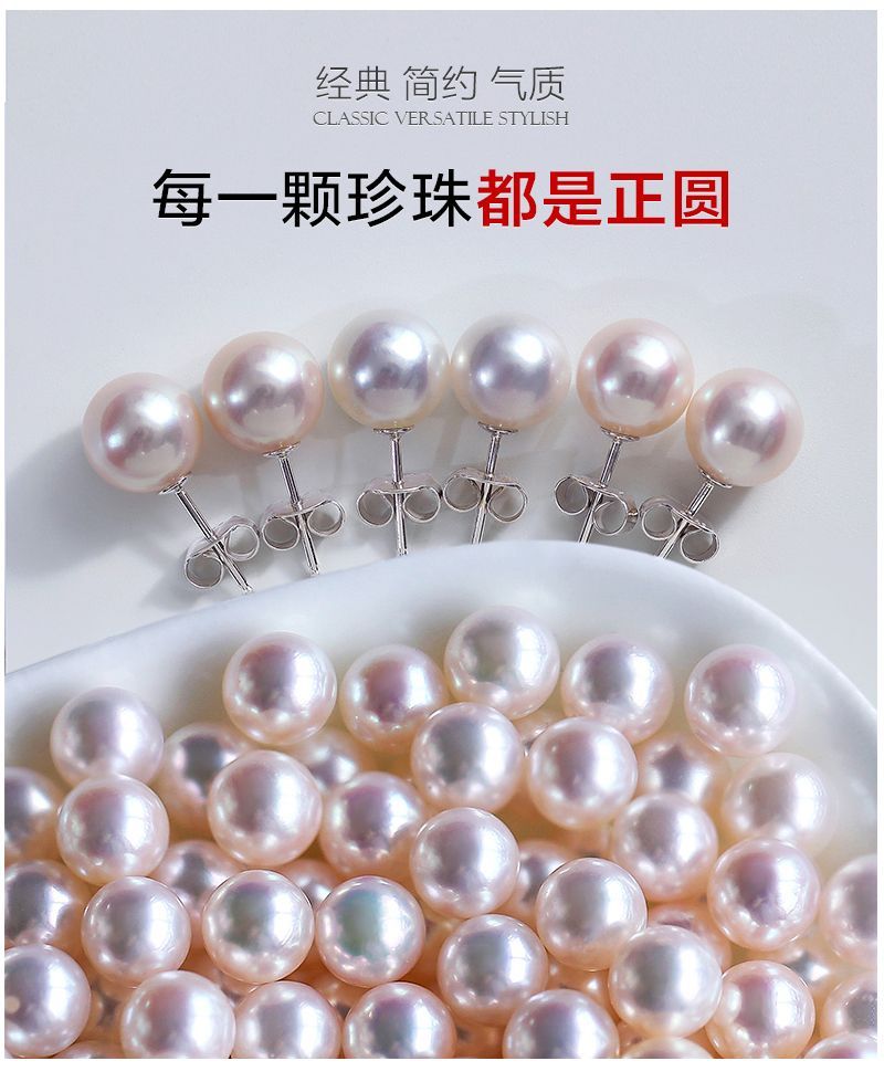 至简 S925银淡水珍珠耳钉正圆素钉 媲美akoya耳环女耳饰