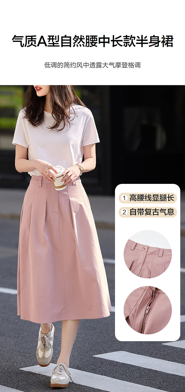 商品名称:【高质美貌赫本风】春秋季通勤中腰a字女裙气质半身裙女中长款 379649