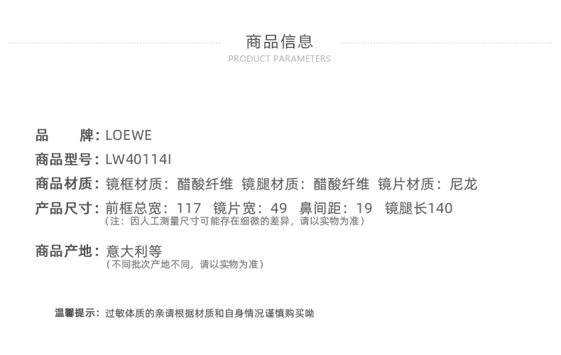 商品名称:Loewe ANAGRAM矩形太阳镜女士国际版 LW40114I 4925E