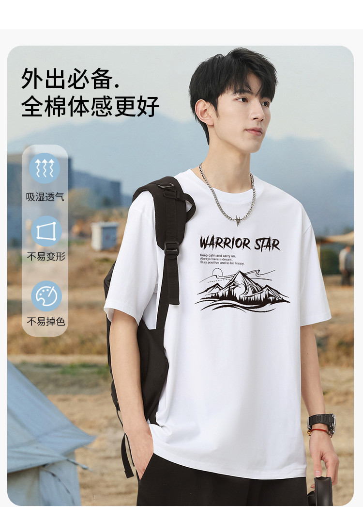 商品名称:【100%棉】舒适夏季百搭男式t恤短袖t恤男宽松潮流运动T恤 265299