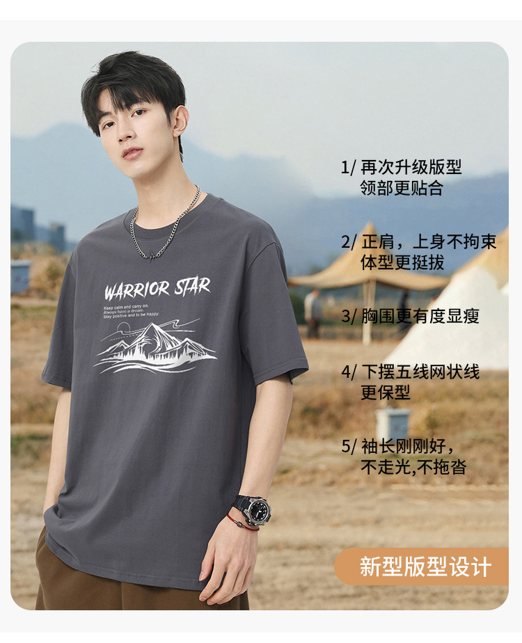 【100%棉】舒适夏季百搭男式t恤短袖t恤男宽松潮流运动T恤 265299