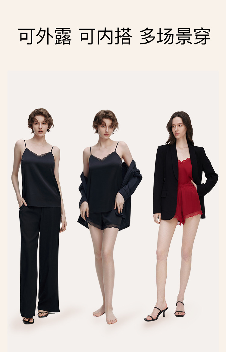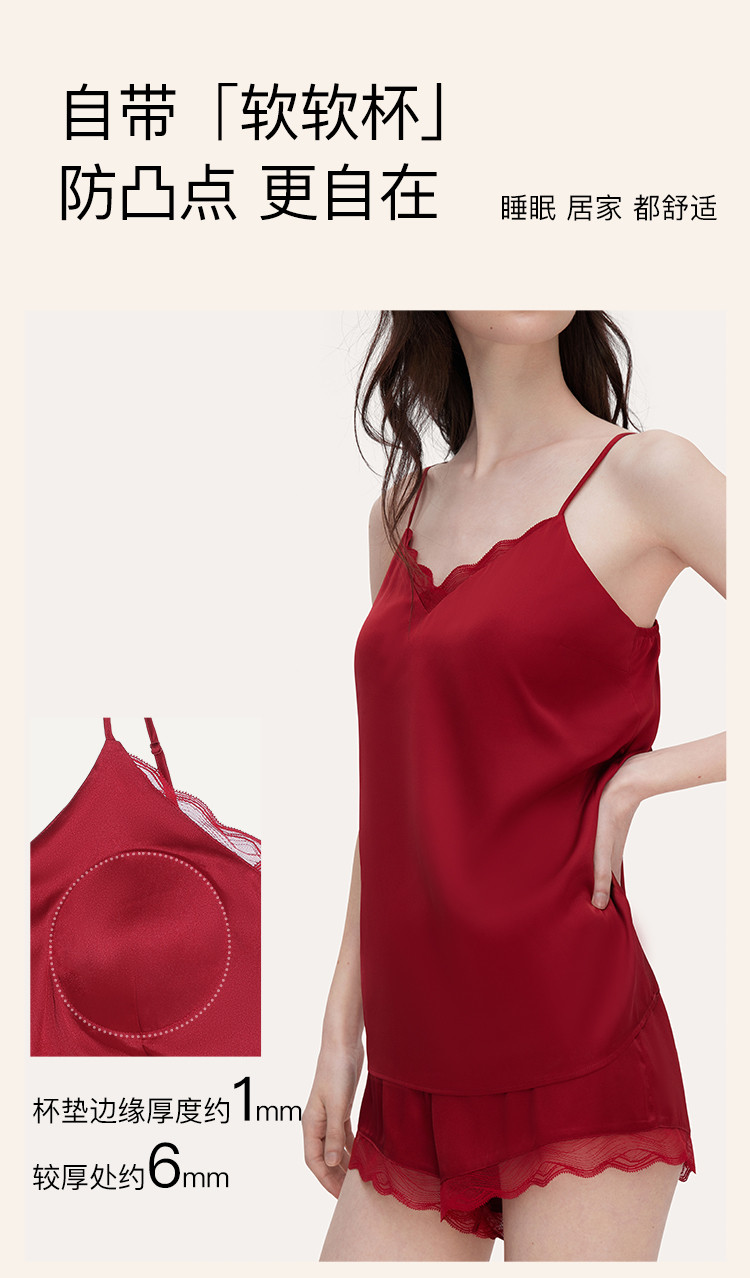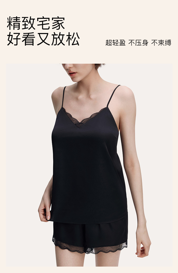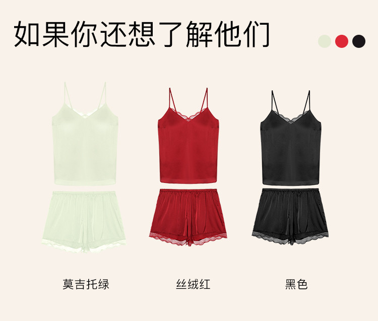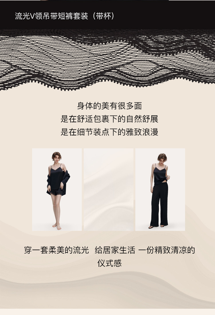 商品名称:【自带杯垫】流光蕾丝吊带短裤家居服套装女士睡衣薄款 479296