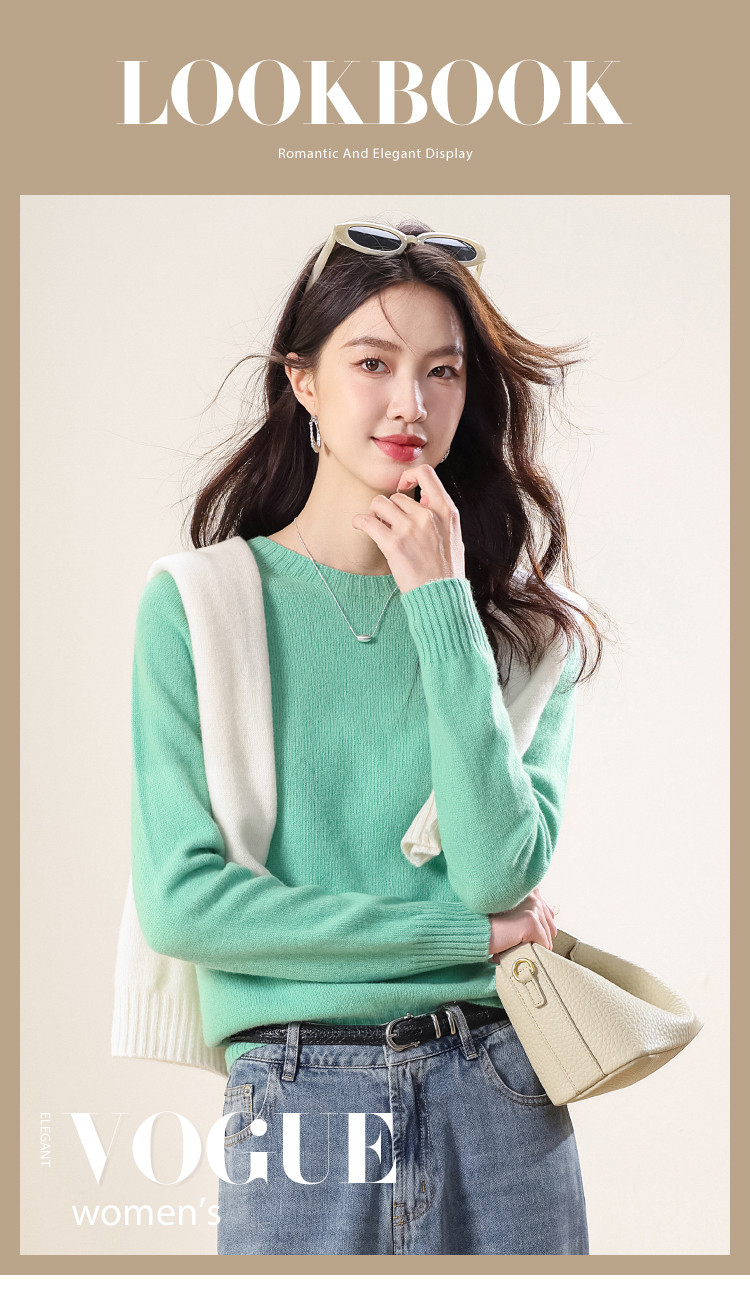 商品名称:【100%绵羊毛】春季无缝圆领纯羊毛本命年毛衣针织羊毛衫女 361683