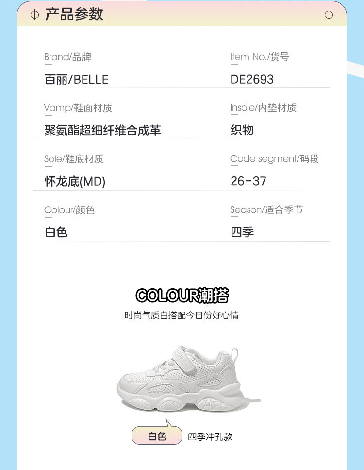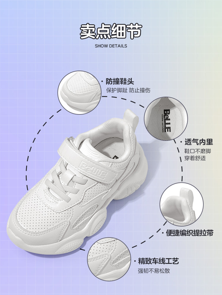 商品名称:【校园运动小白鞋】开学季春款男女童运动鞋百搭跑步鞋儿童运动鞋 045259