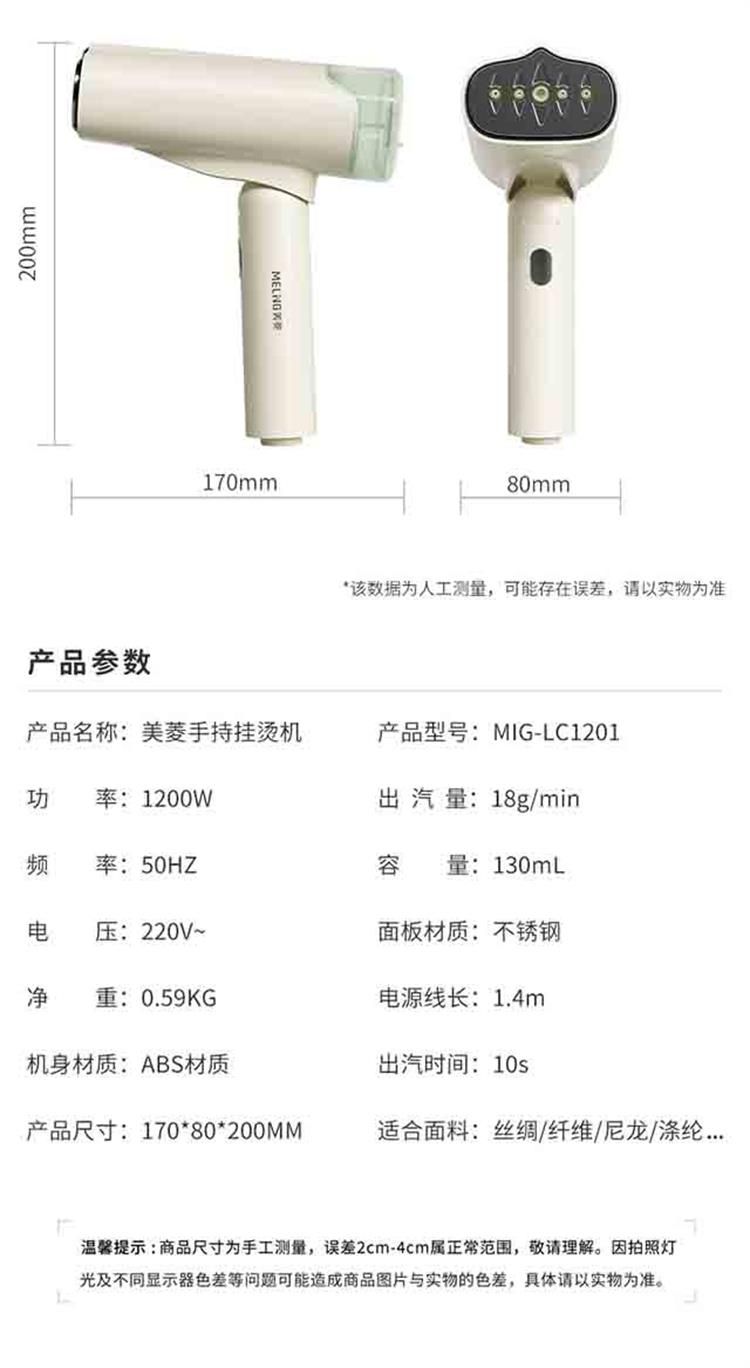 商品名称:美菱(MELING)手持挂烫机不锈钢面板平烫挂烫5孔增压蒸汽可折叠 MIG-LC1201