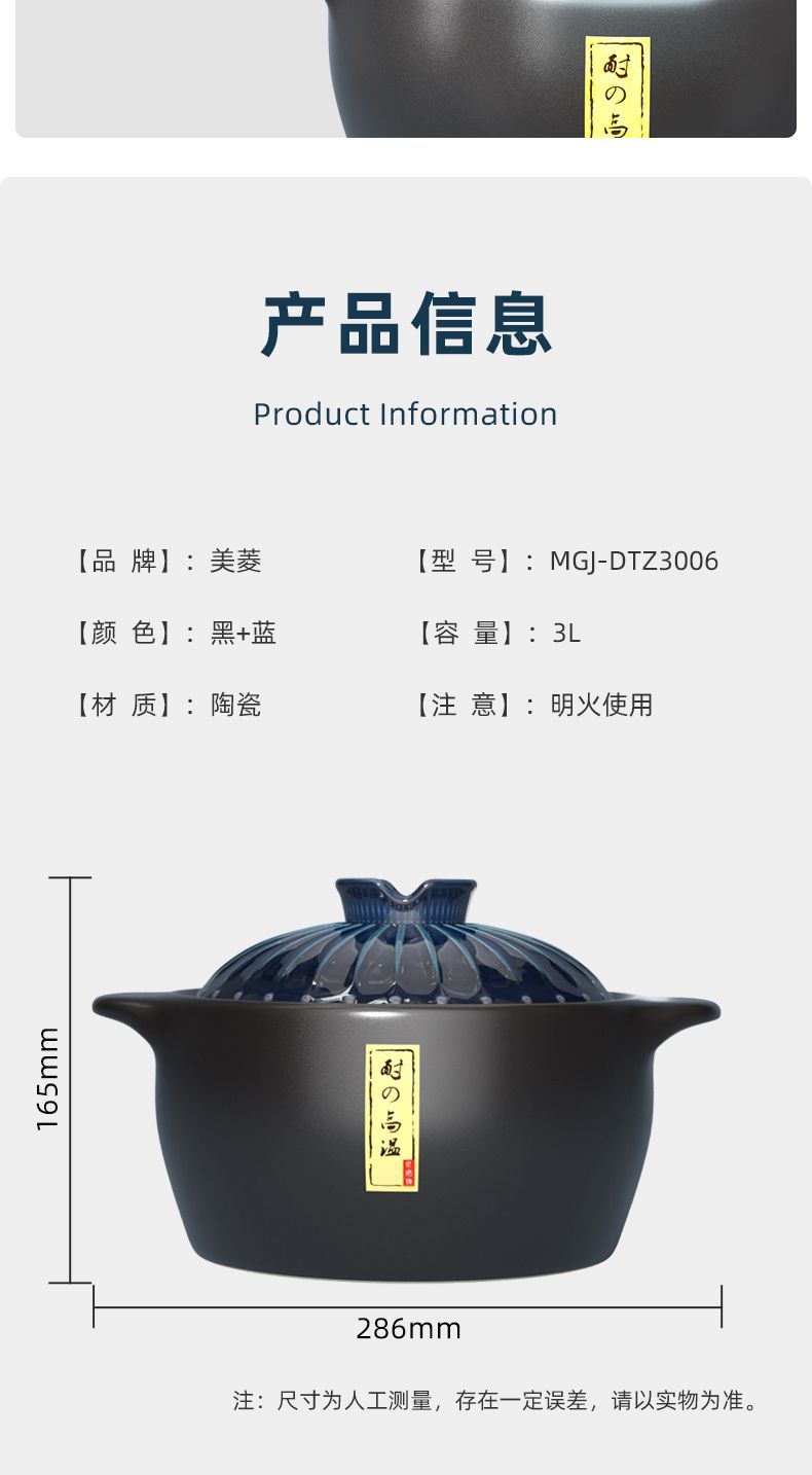 美菱(MELING)陶瓷煲砂锅炖锅养生煲耐热高温煲汤锅燃炉通用 MGJ-DTZ3006