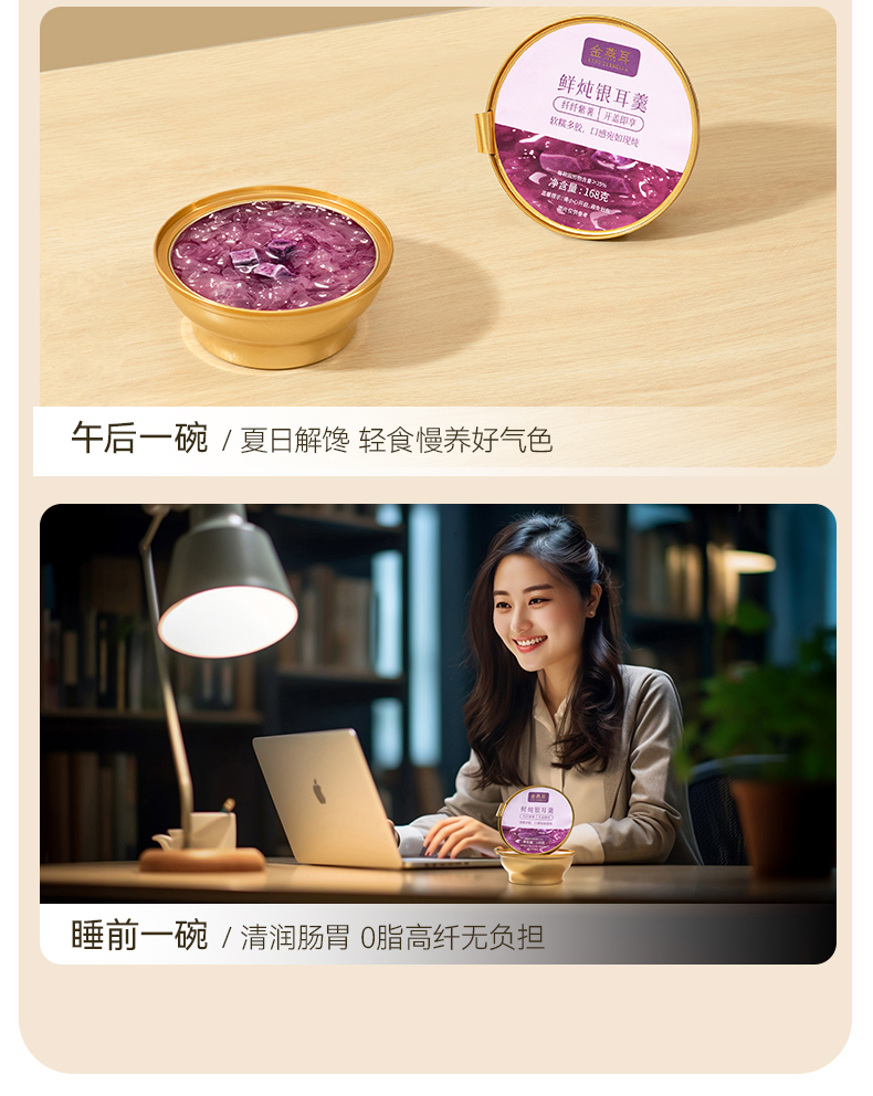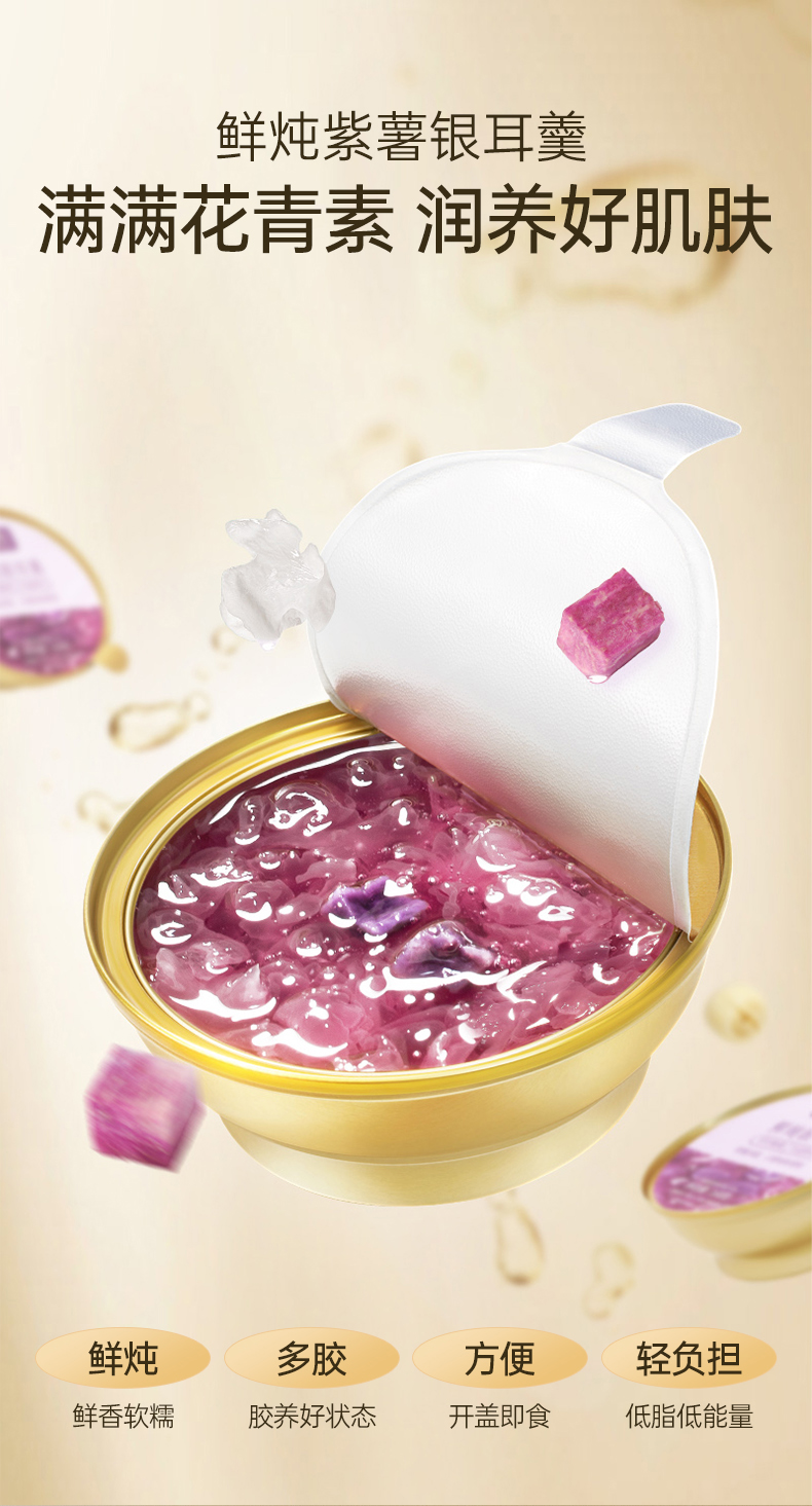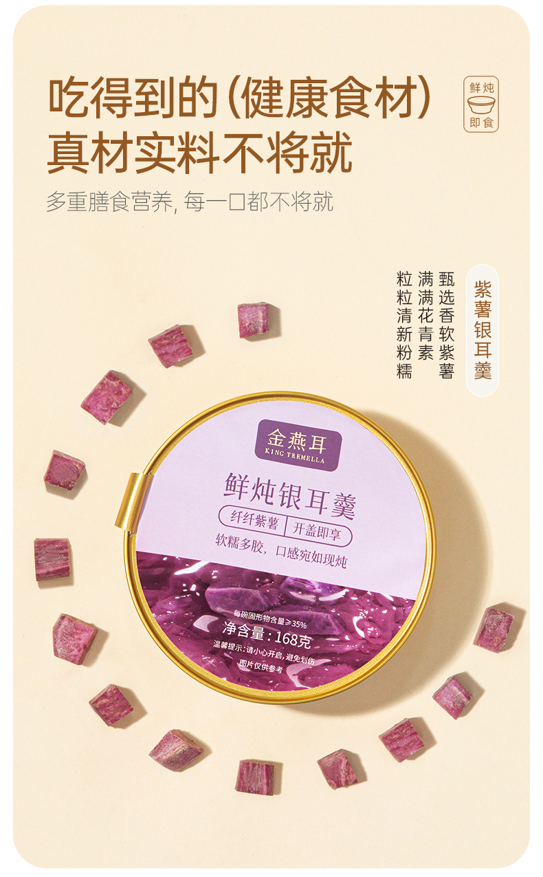 商品名称:金燕耳 鲜炖银耳羹(纤纤紫薯)168g/碗*6 纤纤紫薯口味