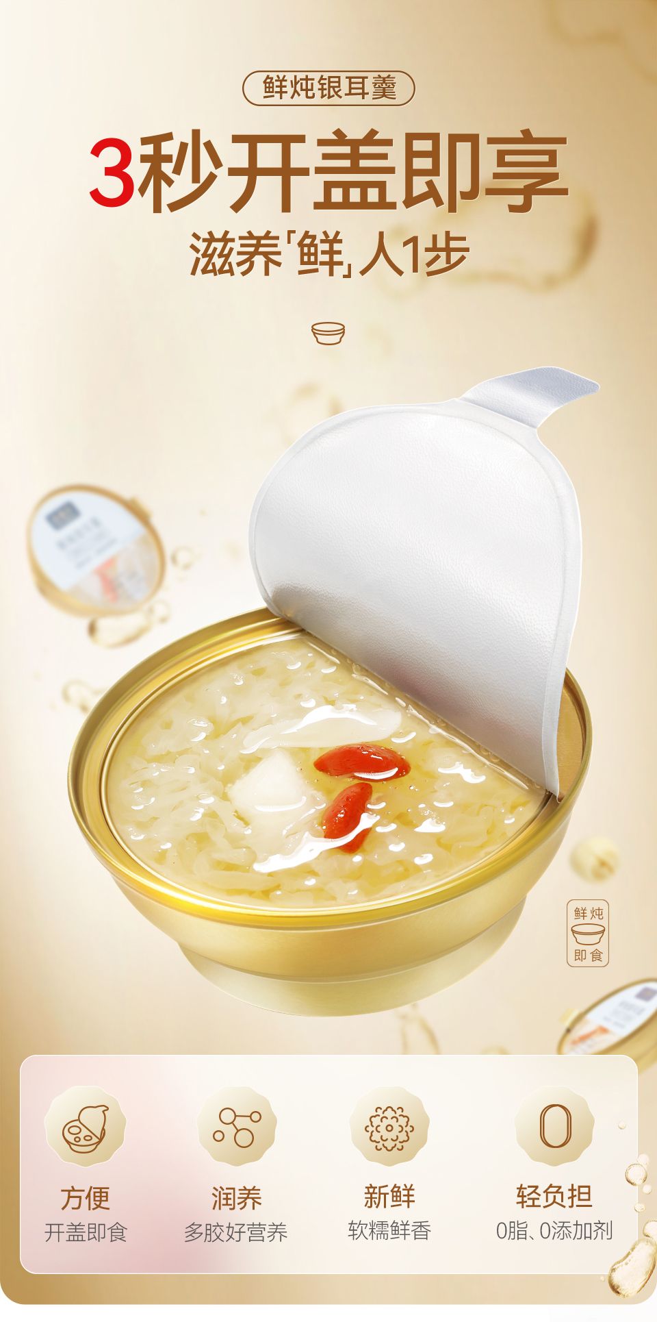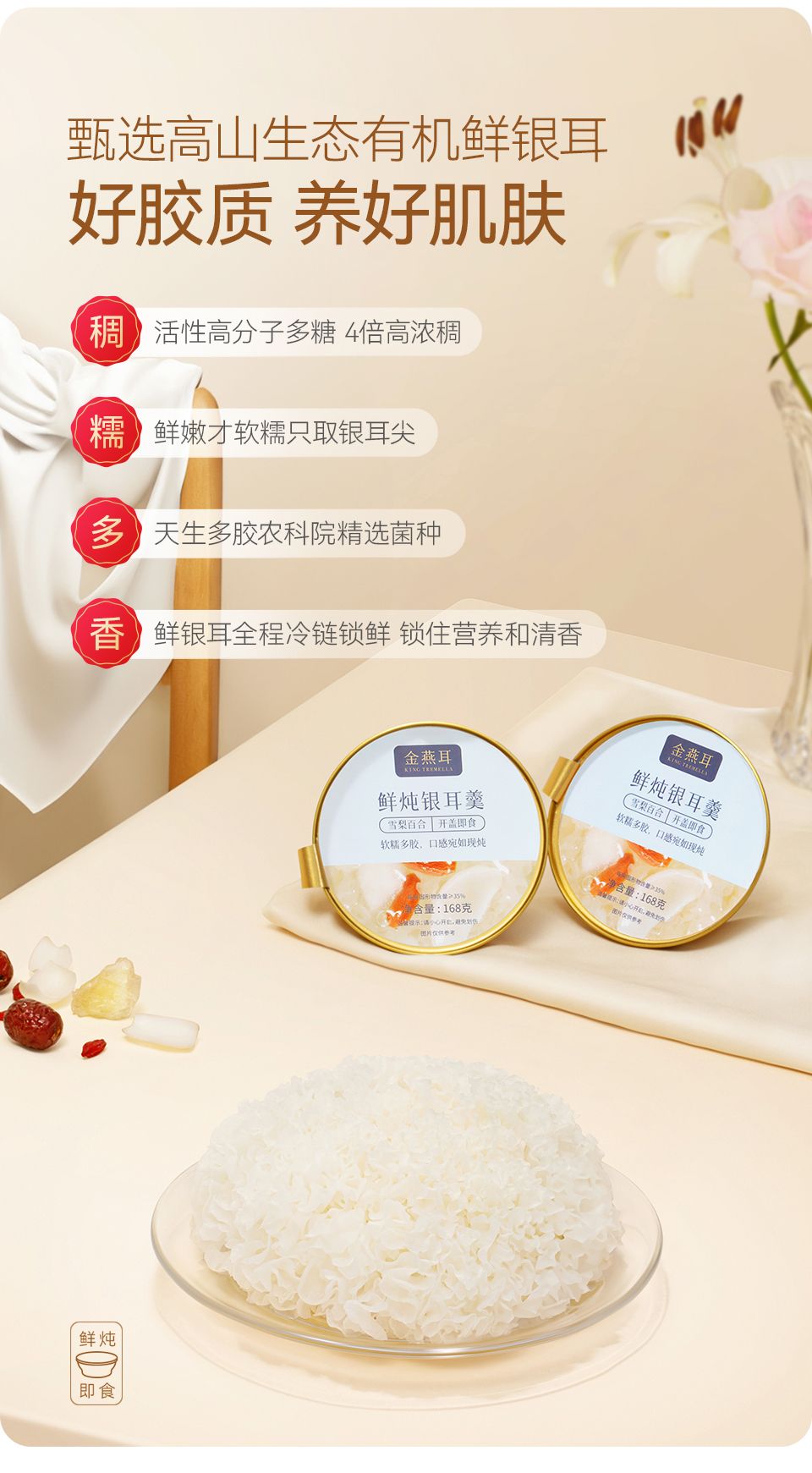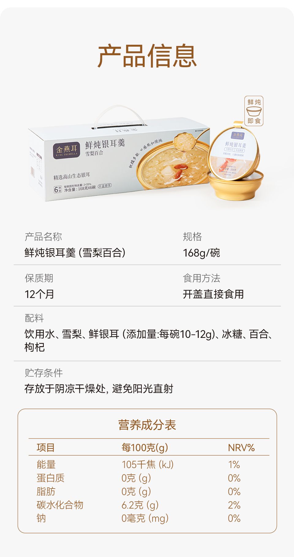 商品名称:金燕耳 鲜炖银耳羹 168g/碗*6 雪梨百合口味