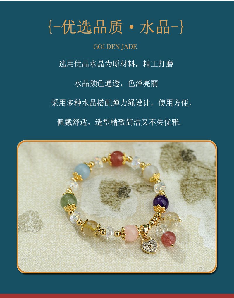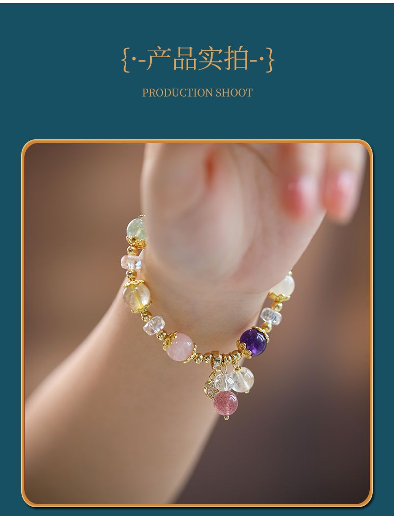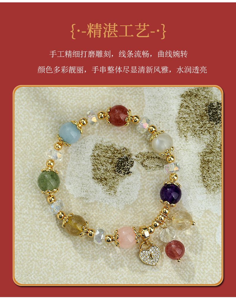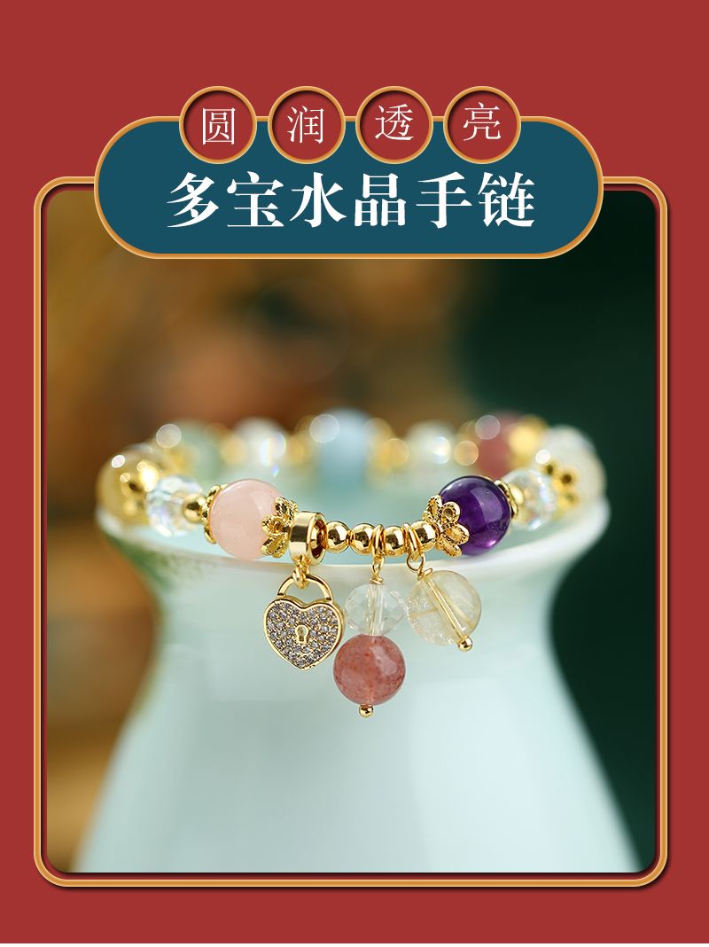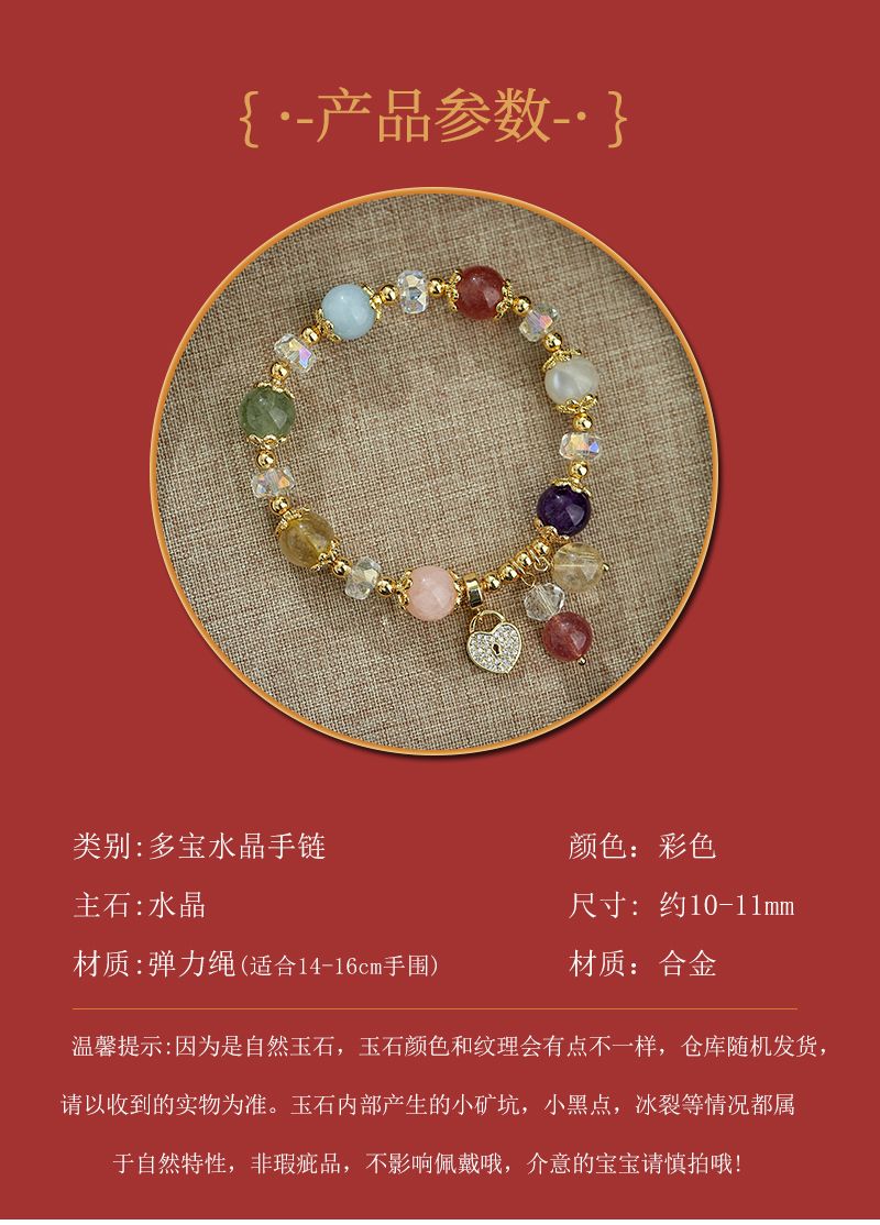 商品名称:多宝水晶手链女金发晶红绿草莓晶海蓝宝紫晶手串爱心手饰