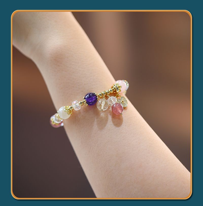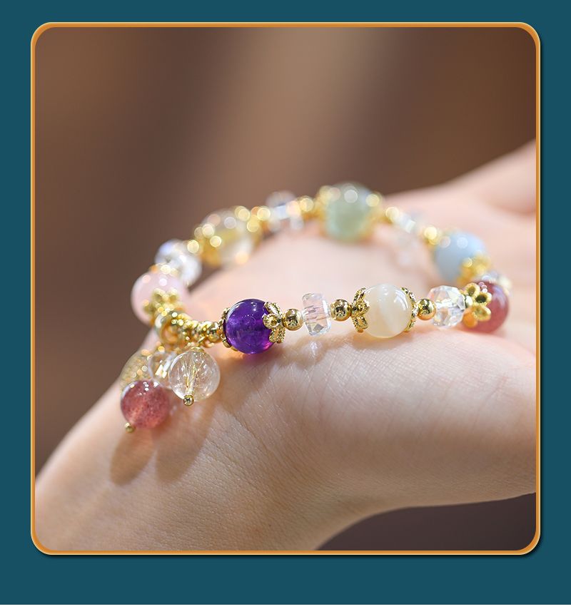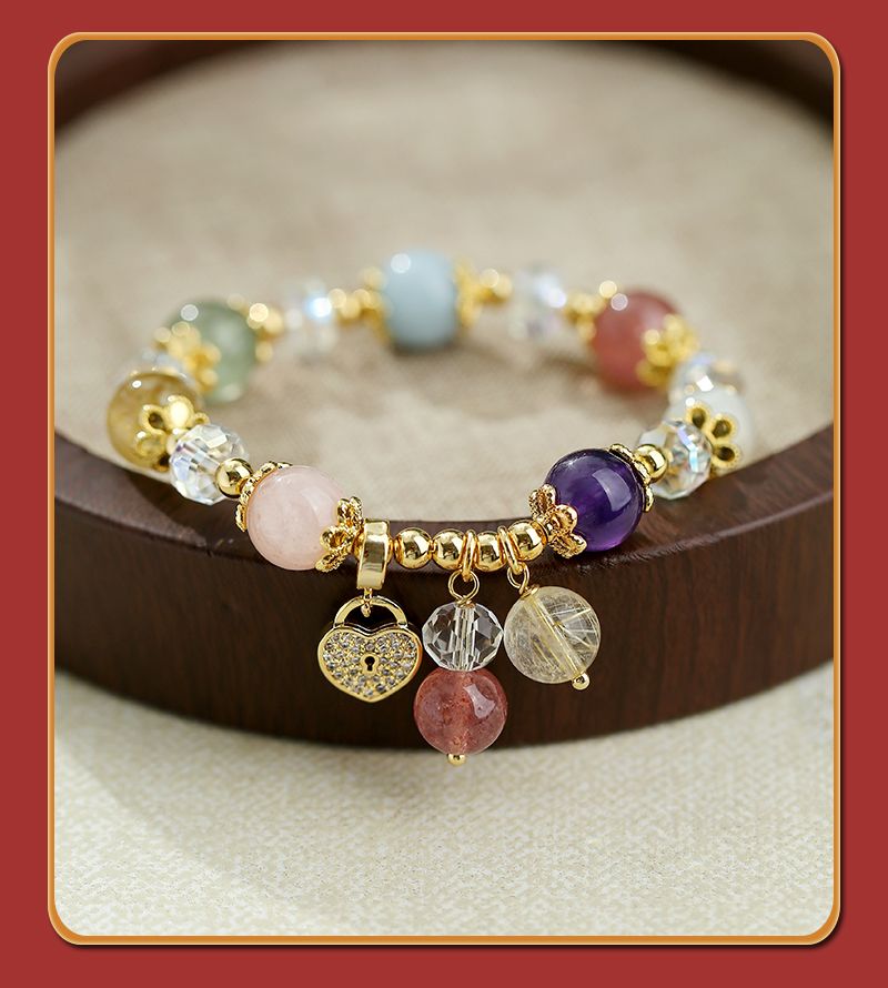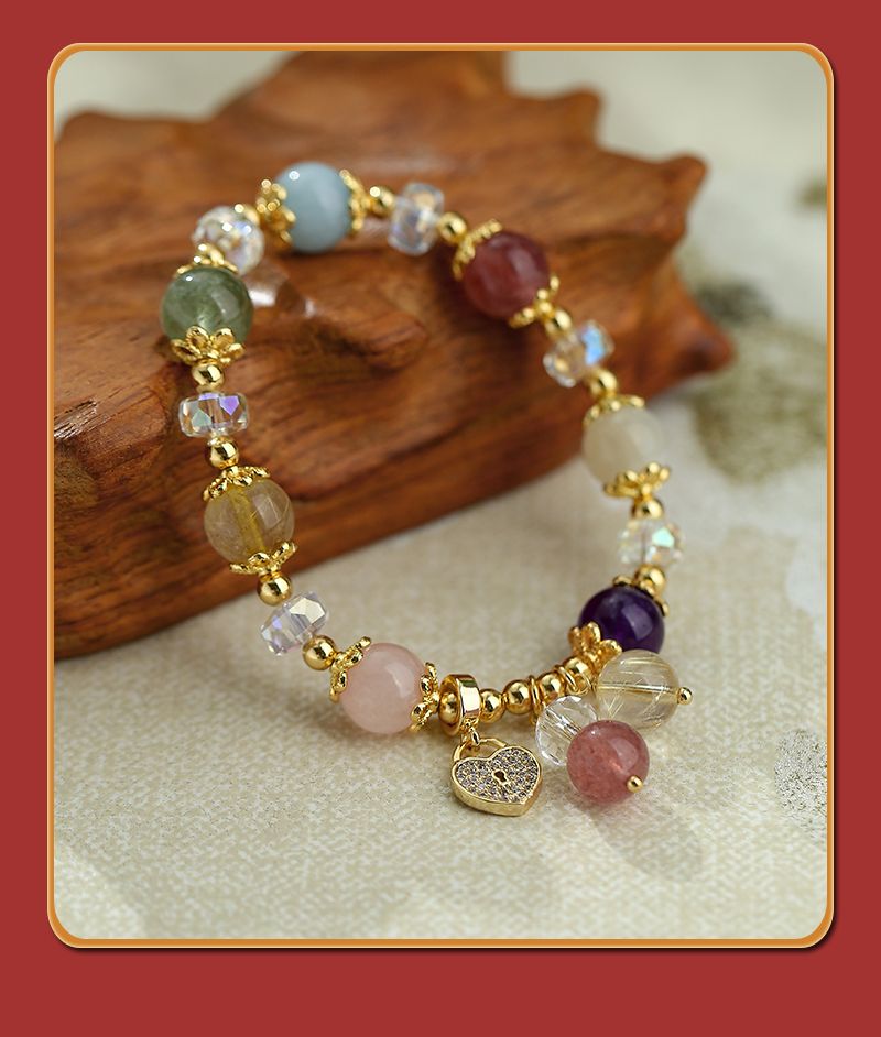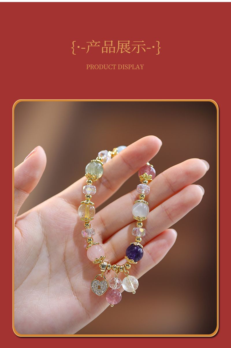 商品名称:多宝水晶手链女金发晶红绿草莓晶海蓝宝紫晶手串爱心手饰