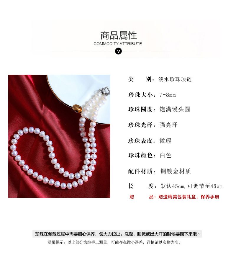 商品名称:7-8mm饱满强光几乎无暇白色淡水珍珠项链【B186】