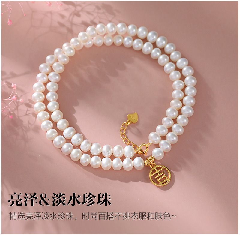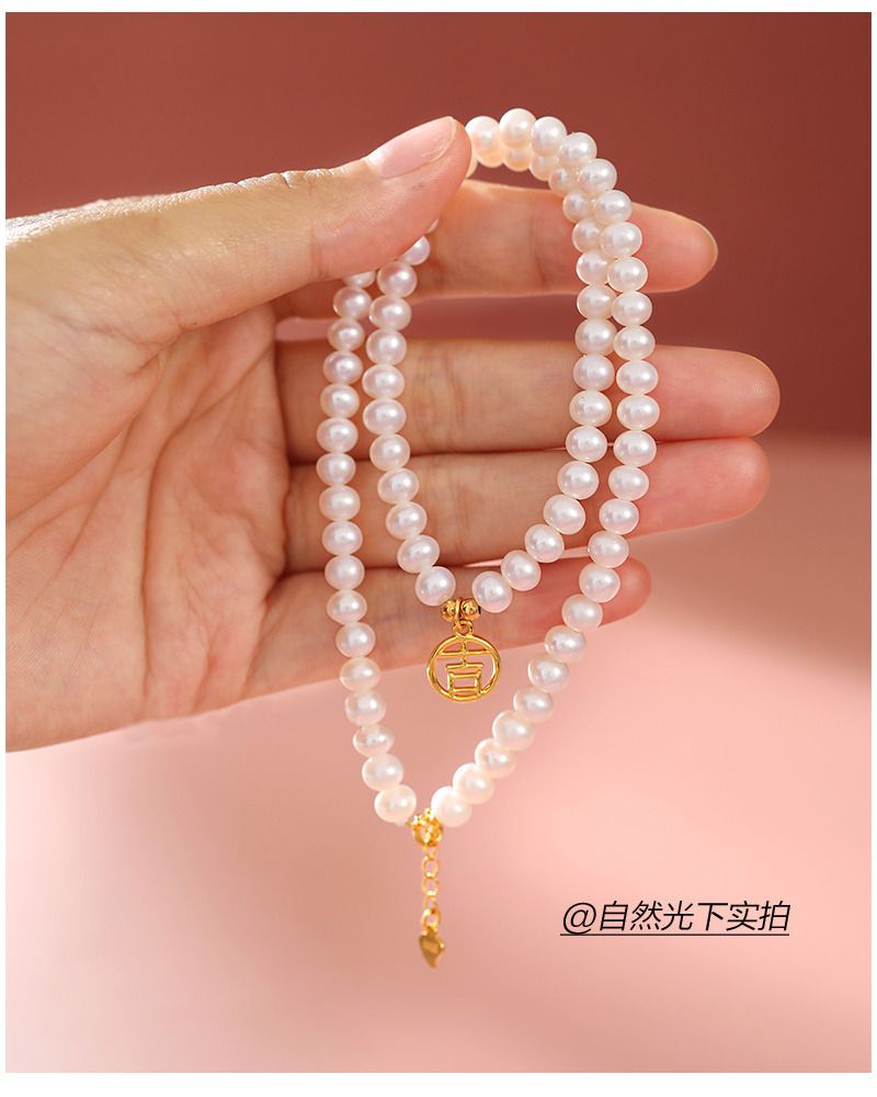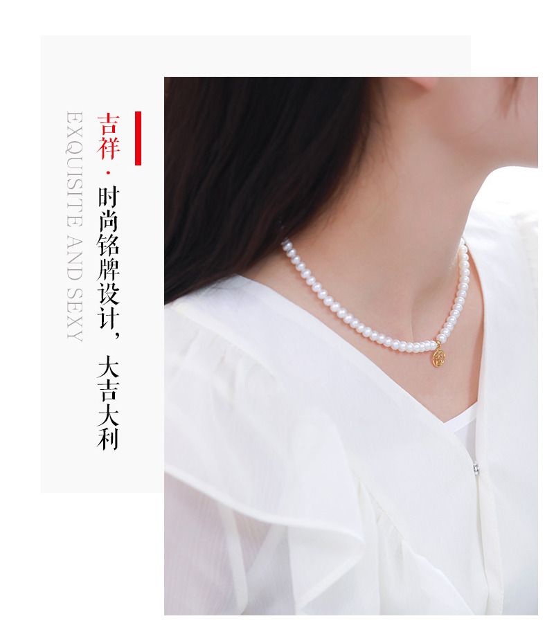 凝薇5-6mm近圆白色淡水珍珠项链S925银吉字