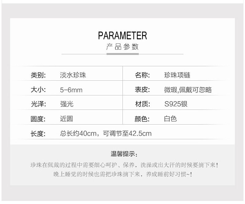 商品名称:凝薇5-6mm近圆白色淡水珍珠项链S925银吉字