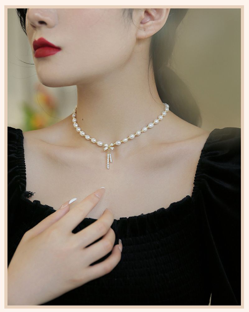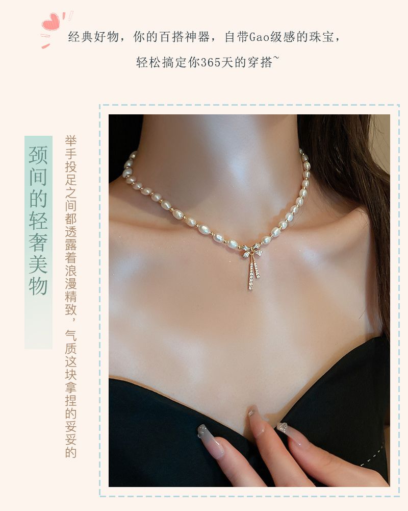 商品名称:优雅蝴蝶结款淡水小珍珠项链