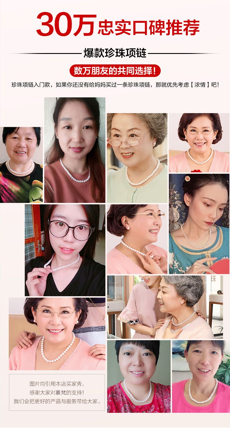 商品名称:浓情8-9mm强光白色淡水珍珠项链 送妈妈婆婆礼物正品【B113】