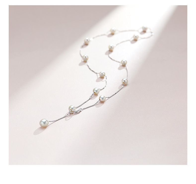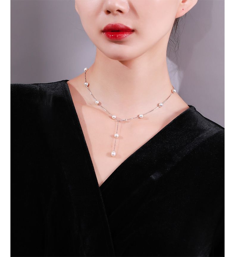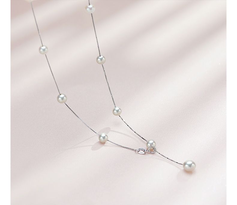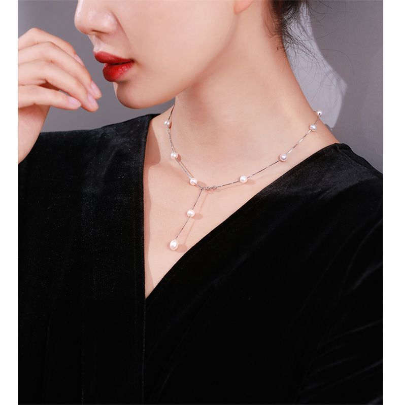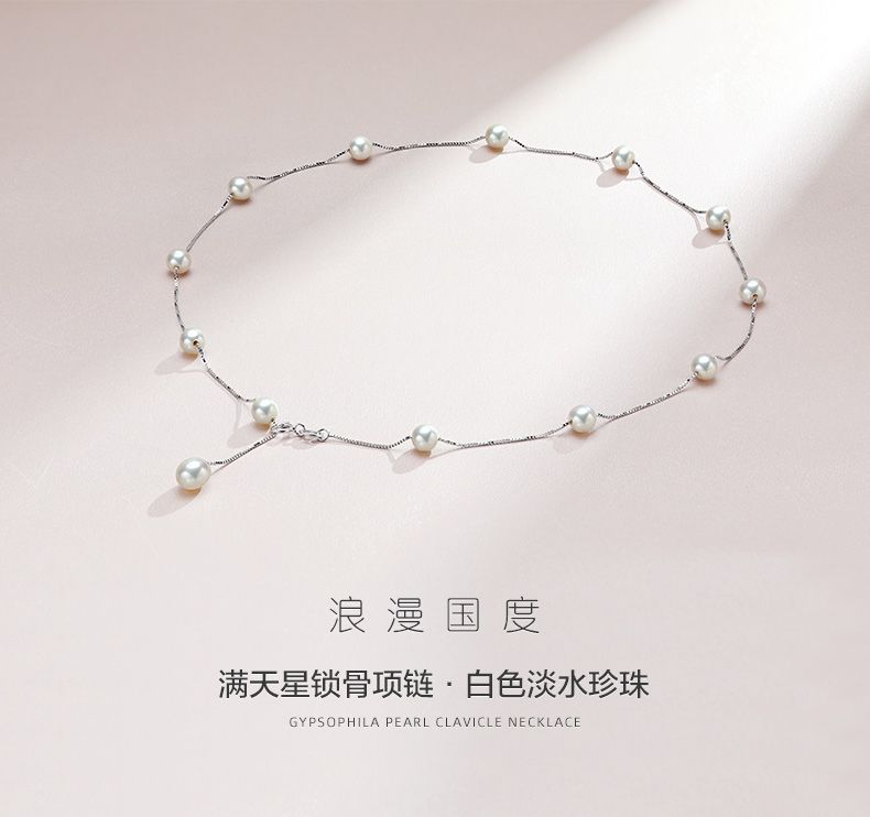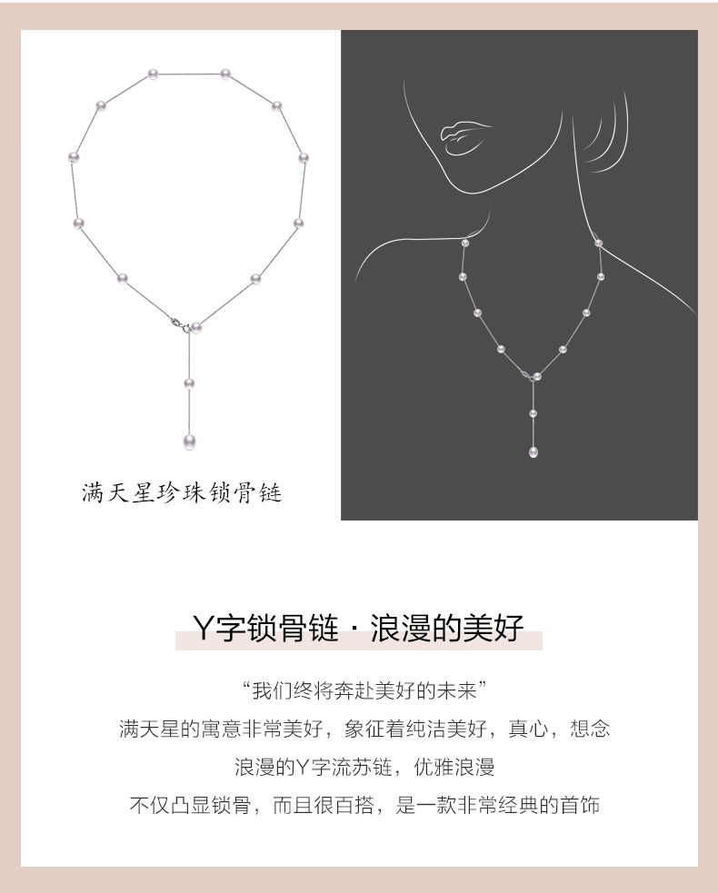 商品名称:鸢尾强光圆珍珠项链满天星流苏款 S925银锁骨链正品6-7mm【Ao12】