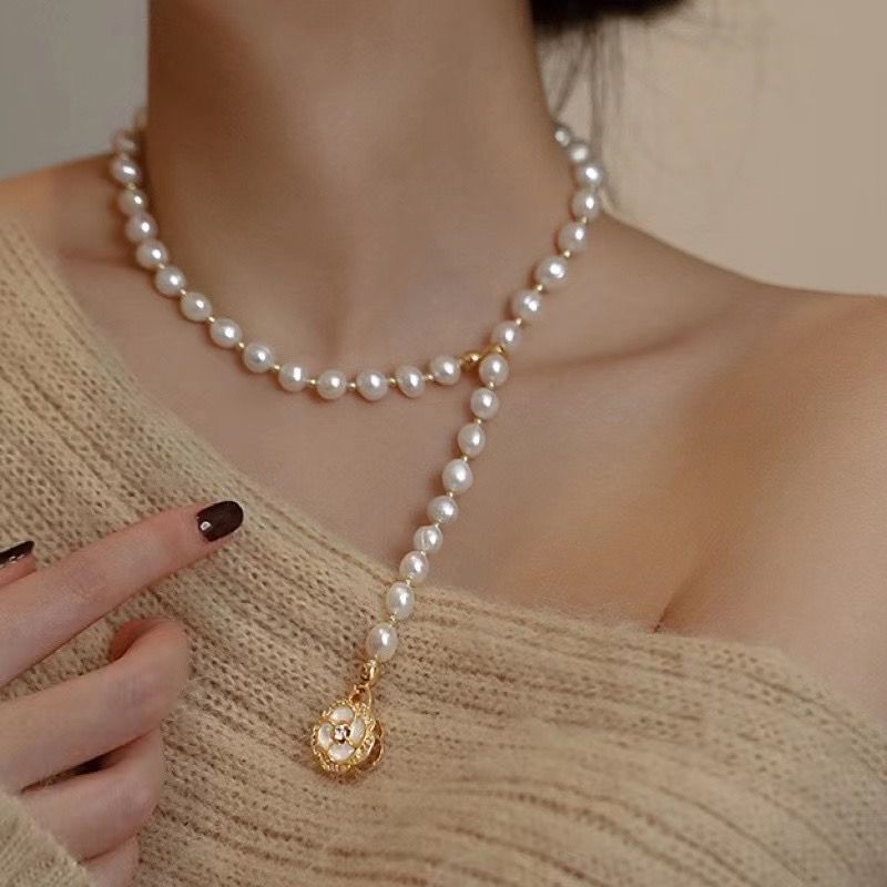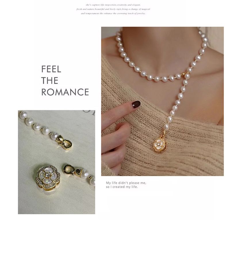 商品名称:一款多戴山茶花扣多功能【淡水珍珠可拆卸项链】