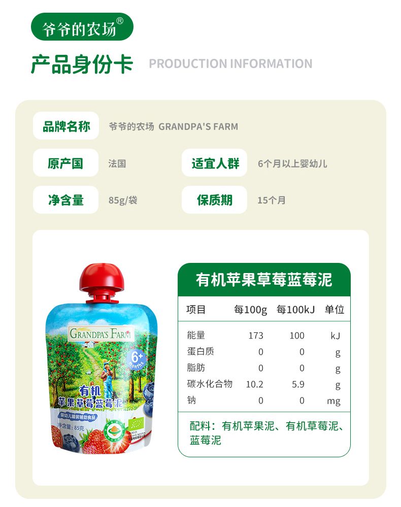 商品名称:爷爷的农场 有机宝宝果泥(法国)85g
