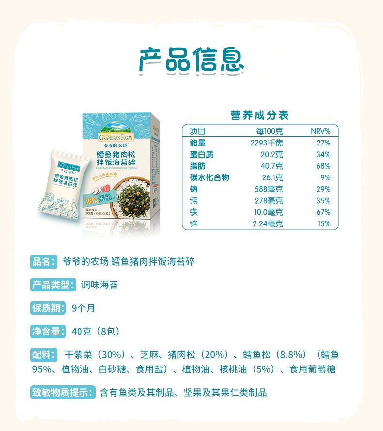 商品名称:爷爷的农场 鳕鱼猪肉松拌饭海苔碎 40g