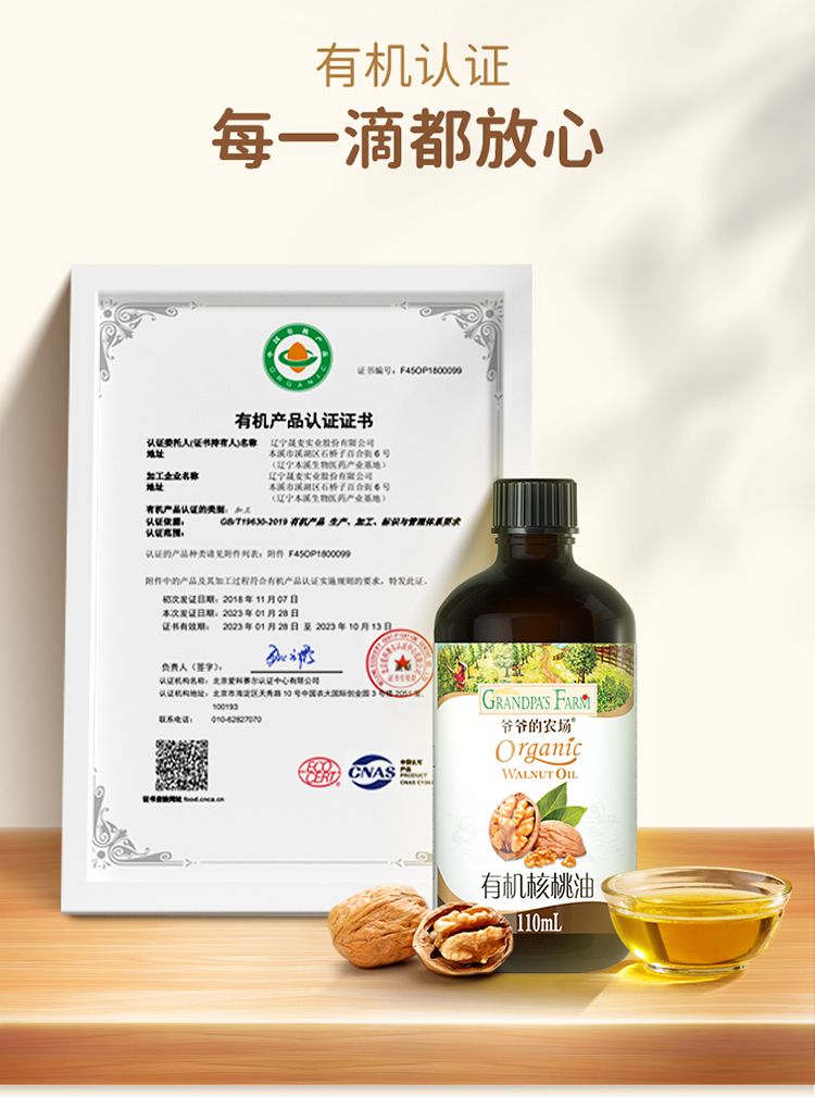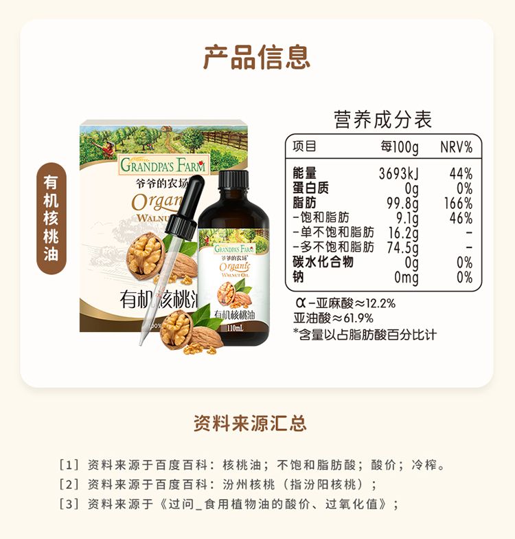 商品名称:爷爷的农场 有机核桃油 110ml