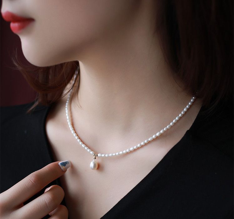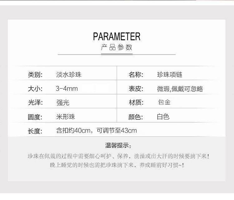 商品名称:米淑 3-4mm迷你米形淡水珍珠项链锁骨链正品送女友