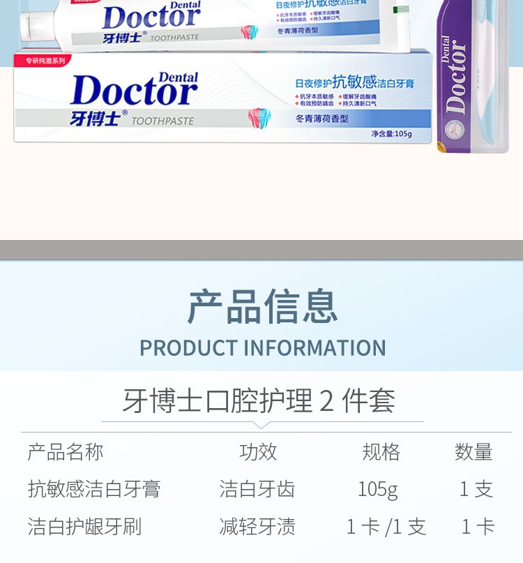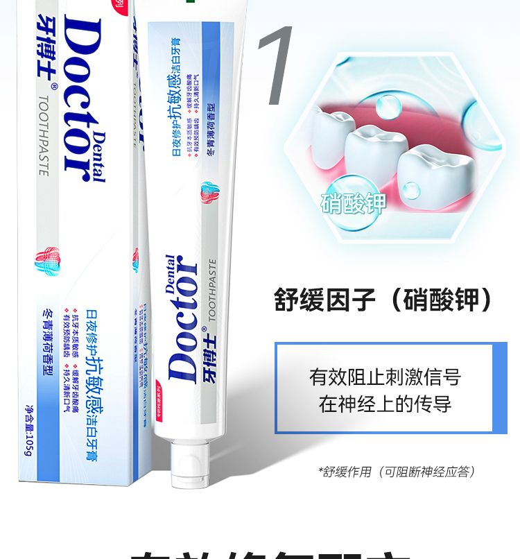 商品名称:牙博士 日夜修护抗敏感亮白牙膏105g*1(赠牙刷)