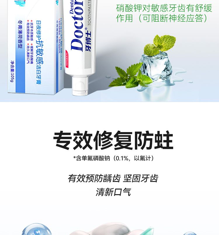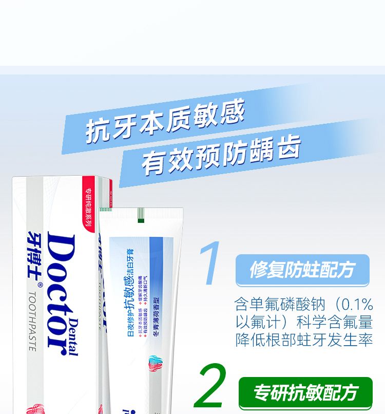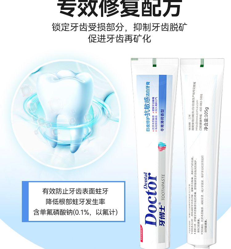 牙博士 日夜修护抗敏感亮白牙膏105g*1(赠牙刷)