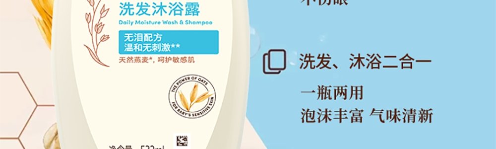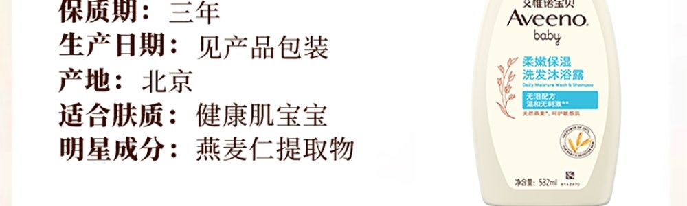 商品名称:艾惟诺(Aveeno)宝贝柔嫩保湿洗发沐浴二合一 532ml