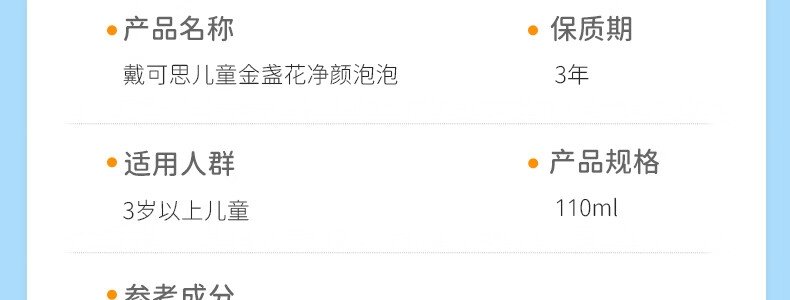 商品名称:戴可思(Dexter)儿童金盏花净颜泡泡 110ml 3岁+