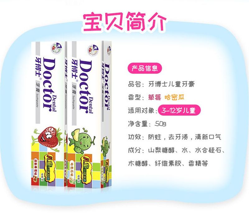 商品名称:牙博士 儿童防蛀牙膏50g*2(哈蜜瓜味\草莓味)
