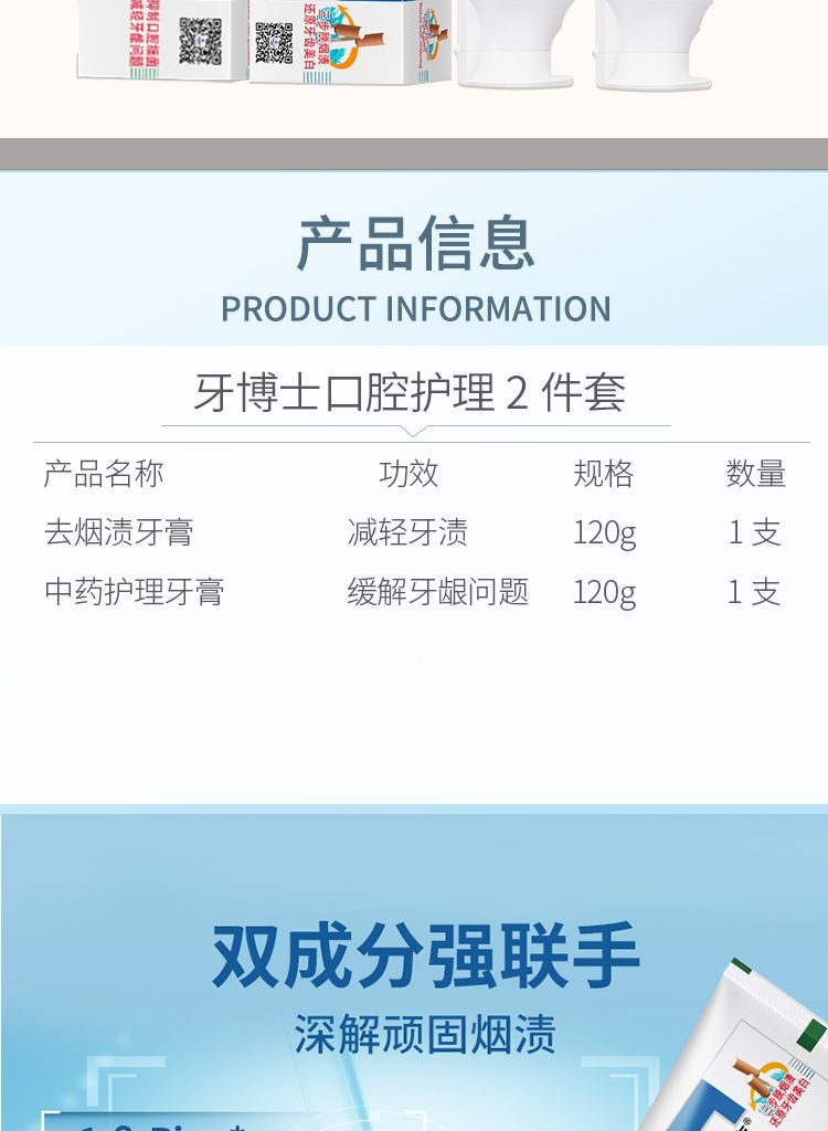商品名称:牙博士 加配疗中药牙膏120g+加配疗去烟渍牙膏120g