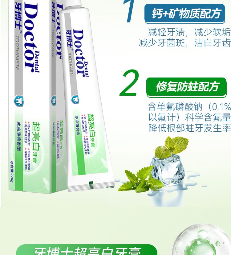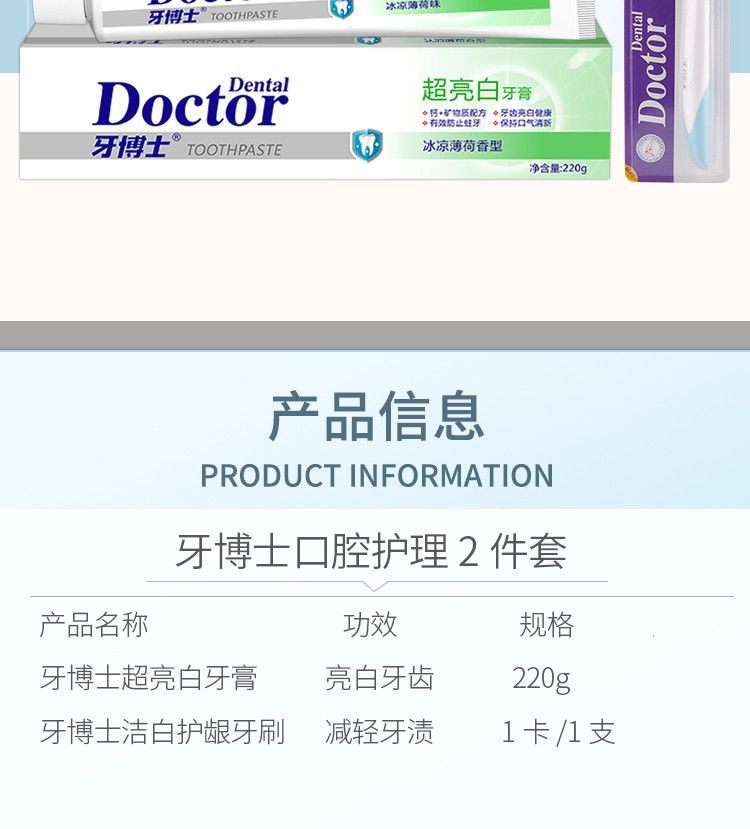 商品名称:牙博士 超亮白牙膏220g*2支(赠2支牙刷)