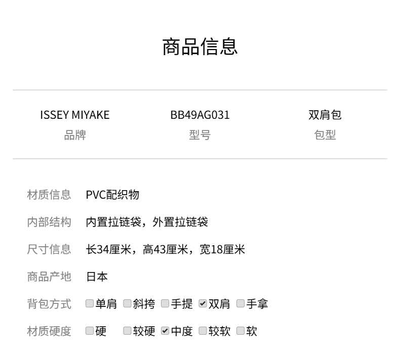 商品名称:ISSEY MIYAKE双肩包BB49AG031 -16