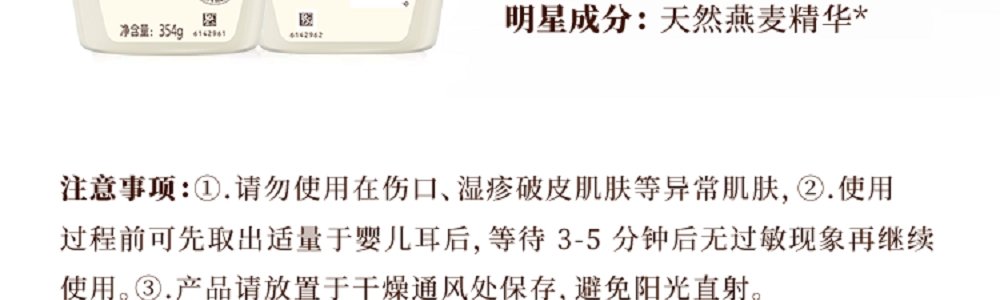 商品名称:艾惟诺(Aveeno)宝贝柔嫩保湿润肤身体乳 354g