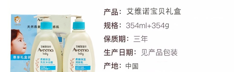 商品名称:艾惟诺(Aveeno)宝贝护肤礼盒 洗发沐浴露354ml+润肤乳354g