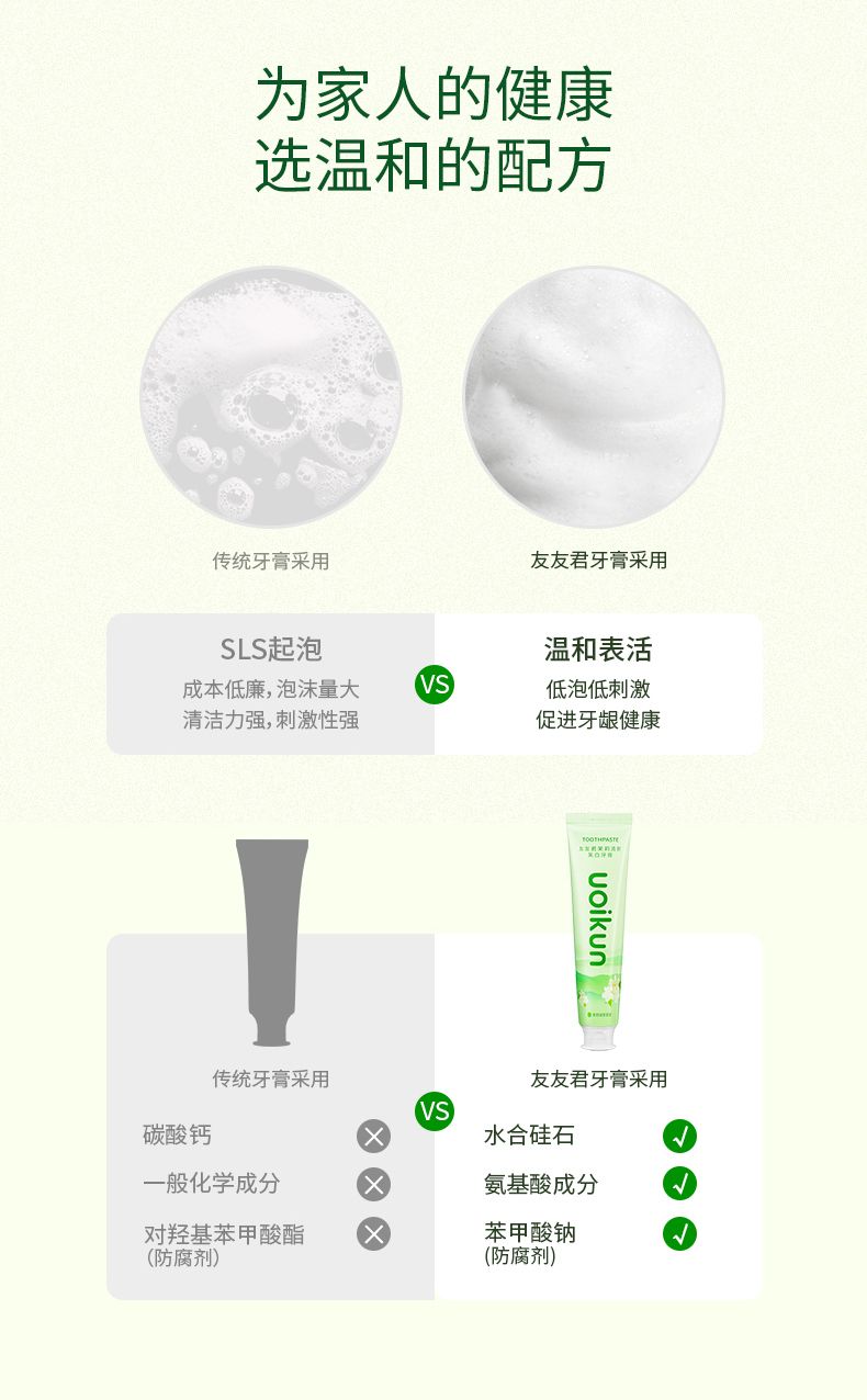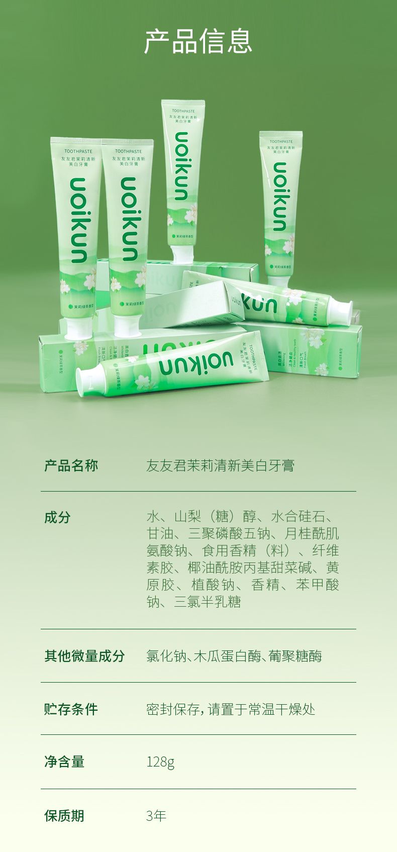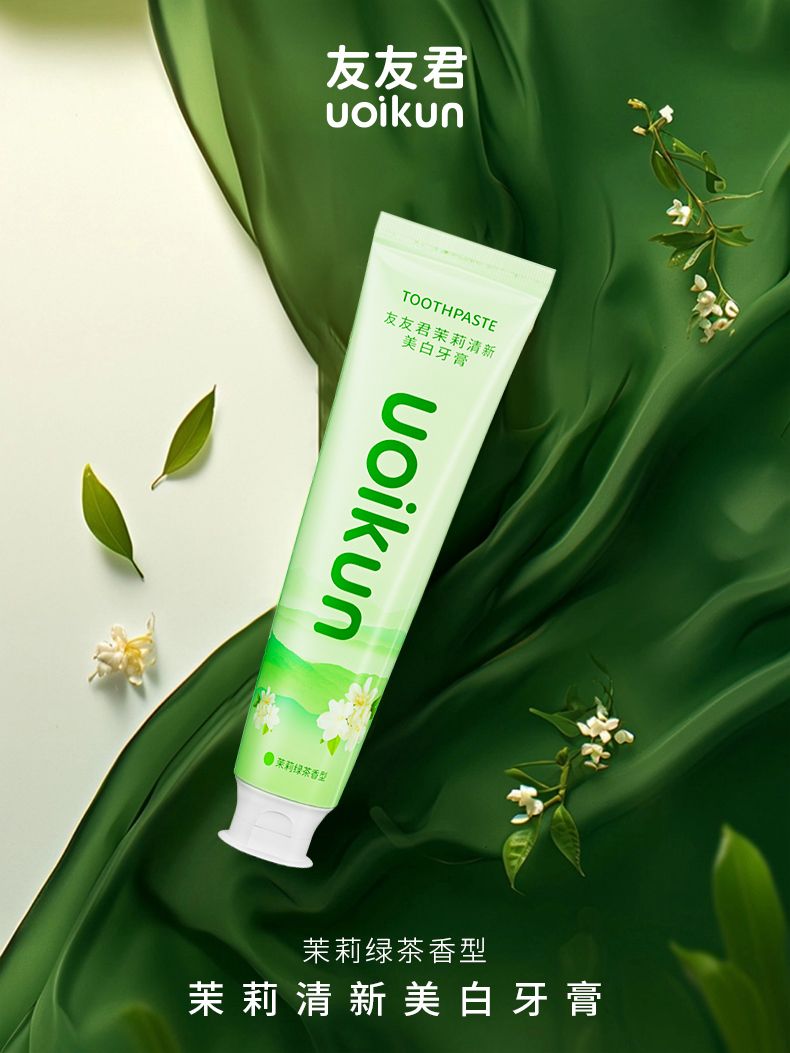 商品名称:uoikun/友友君 茉莉清新美白牙膏(茉莉绿茶香型)128g/支