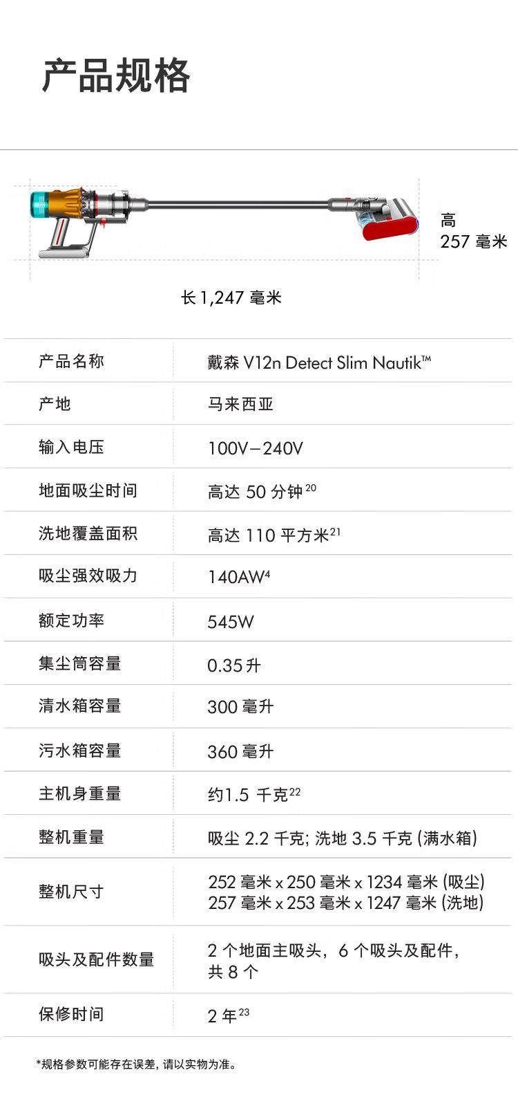 商品名称:戴森(DYSON)V12n Detect Slim Nautik 轻量吸尘洗地机