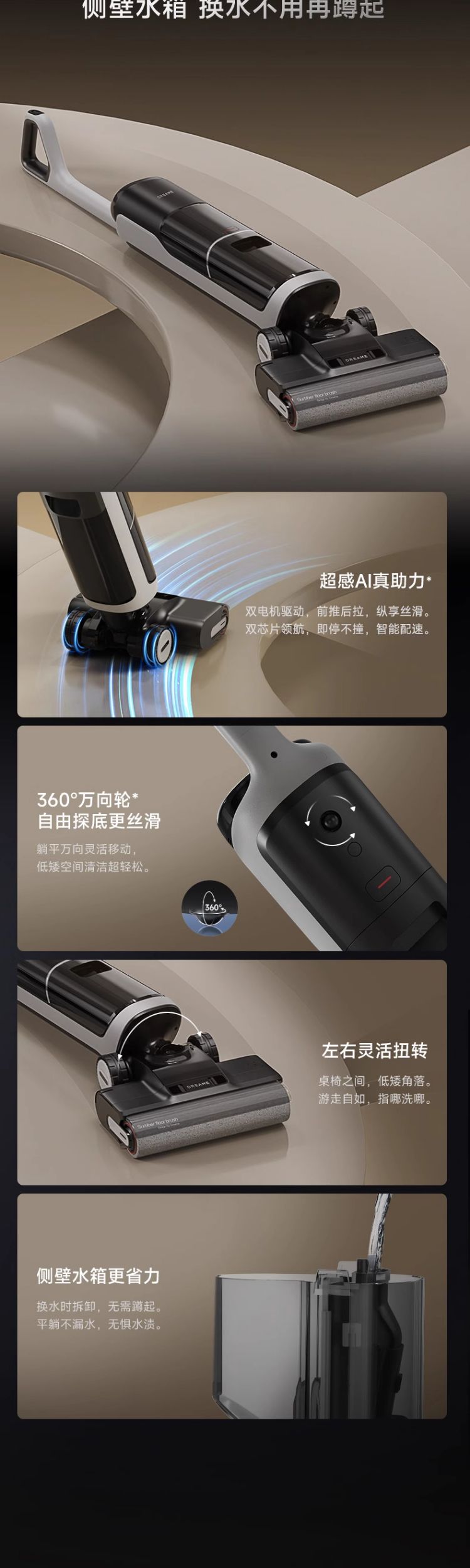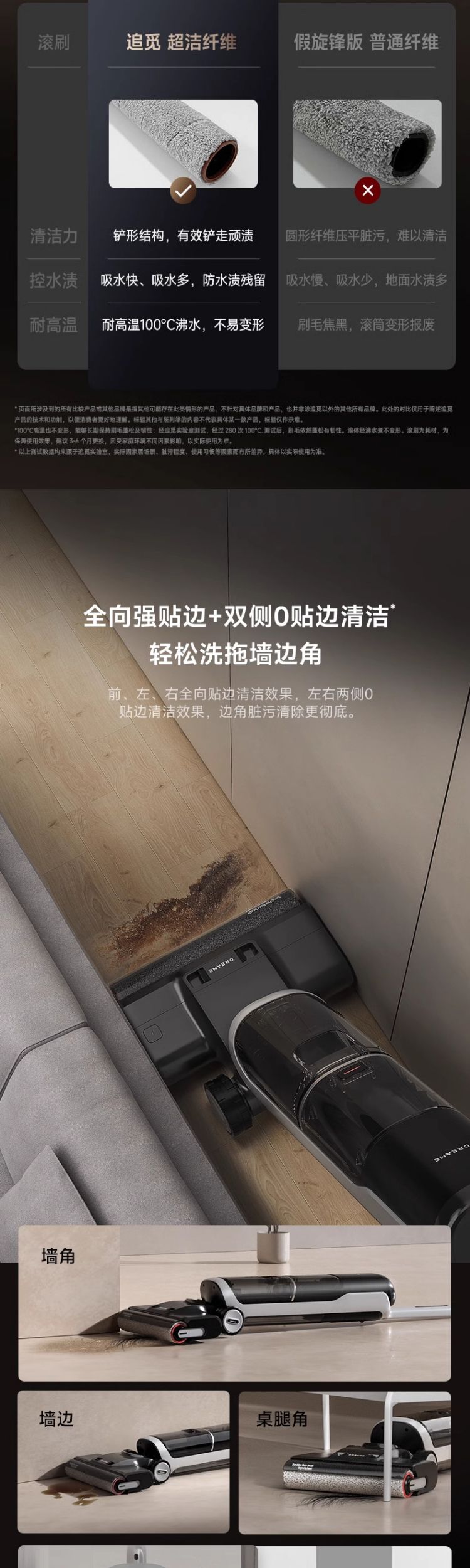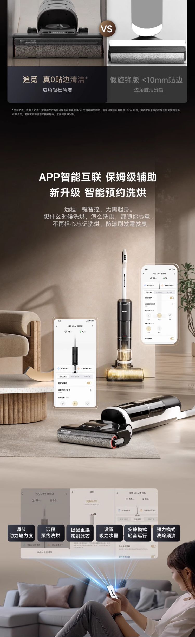 追觅H20Ultra旋锋版躺平无线智能家用热水洗地机高温速干双贴边吸拖洗烘一体扫地机割毛式防缠绕吸尘器
