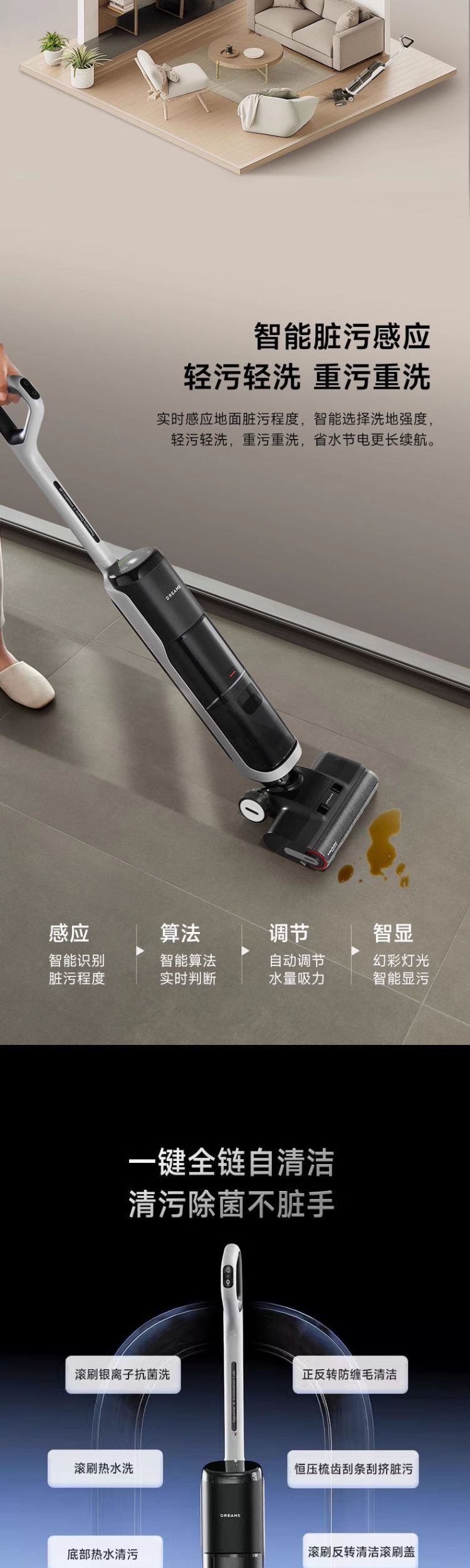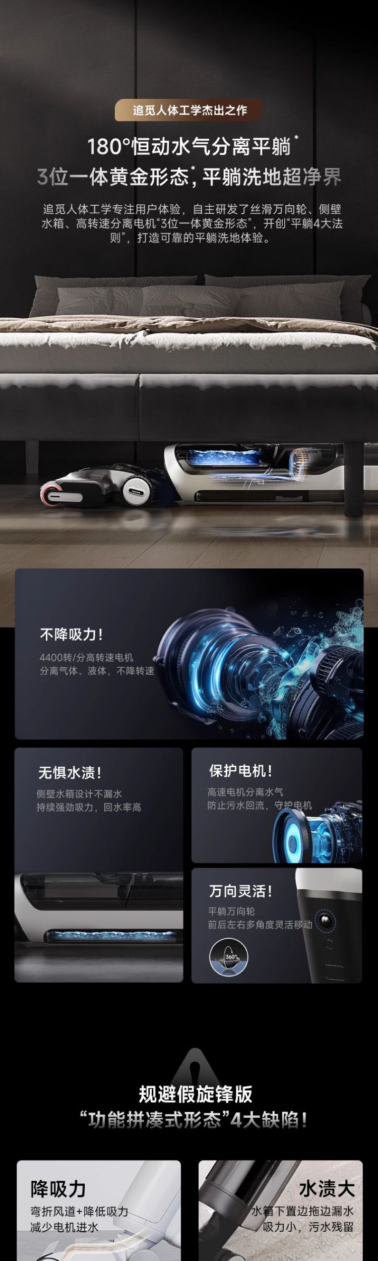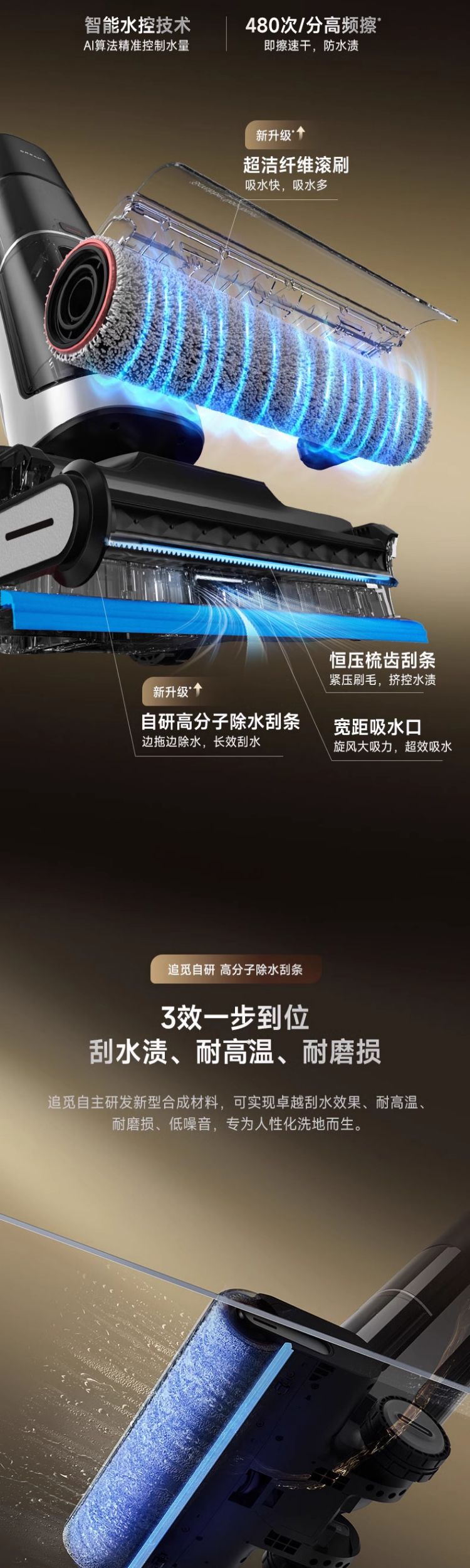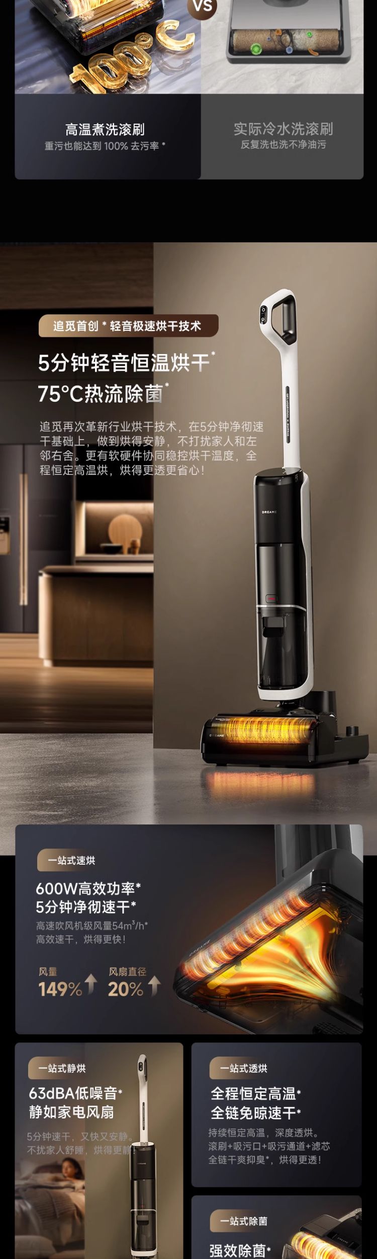 追觅H20Ultra旋锋版躺平无线智能家用热水洗地机高温速干双贴边吸拖洗烘一体扫地机割毛式防缠绕吸尘器