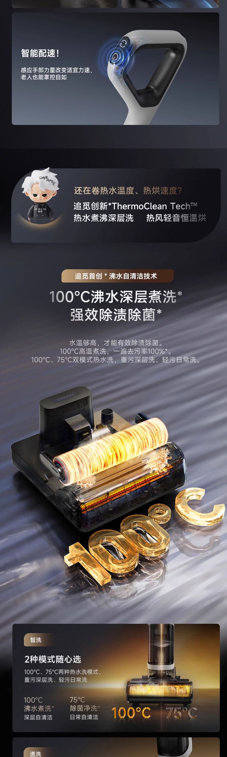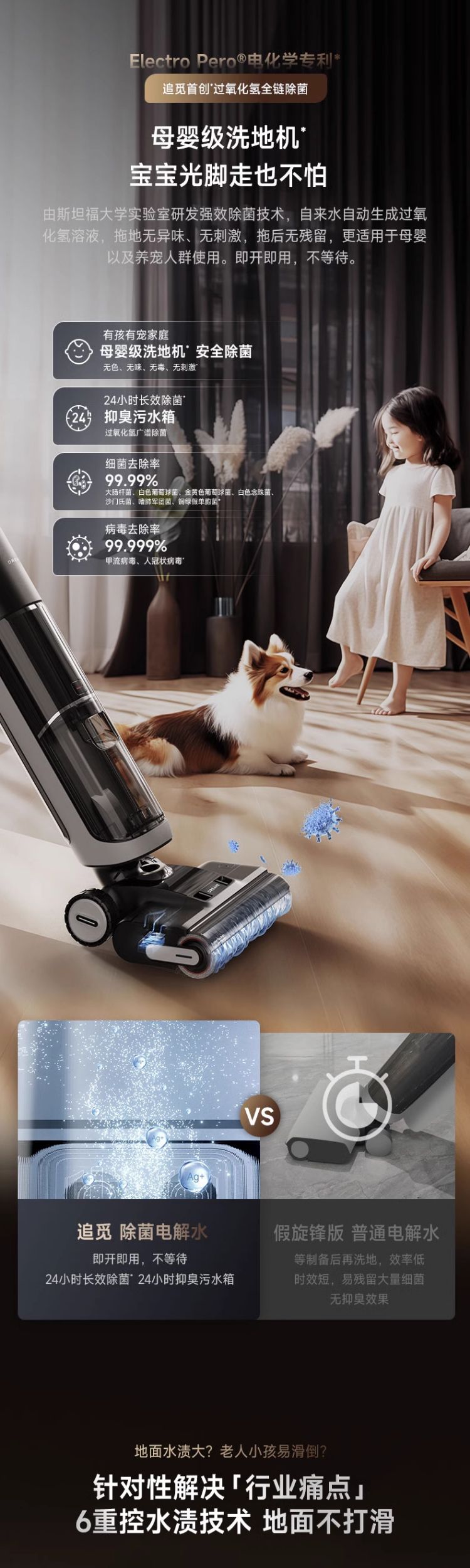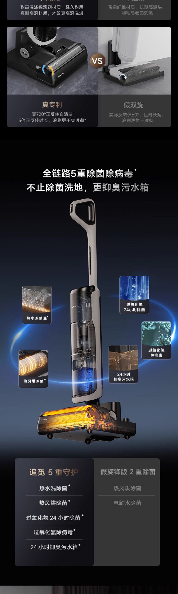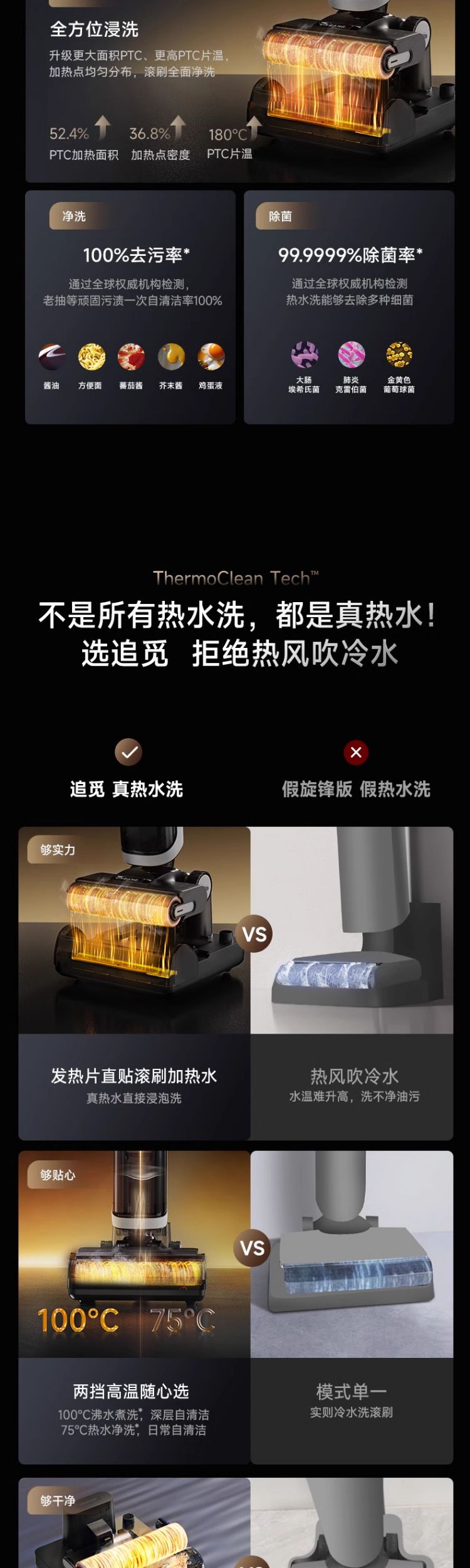 商品名称:追觅H20Ultra旋锋版躺平无线智能家用热水洗地机高温速干双贴边吸拖洗烘一体扫地机割毛式防缠绕吸尘器