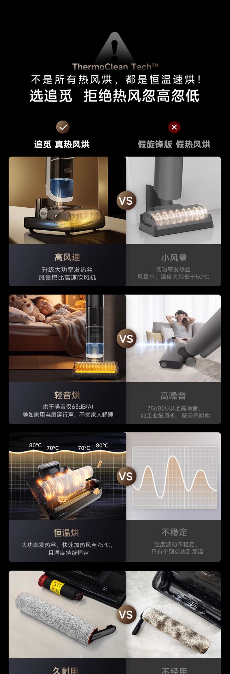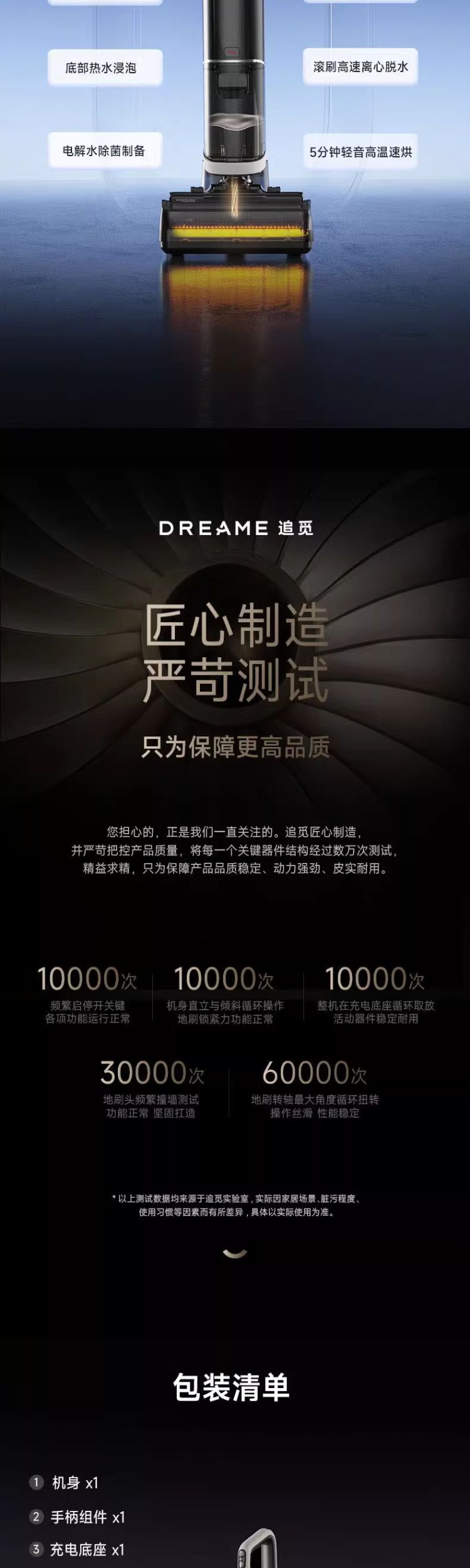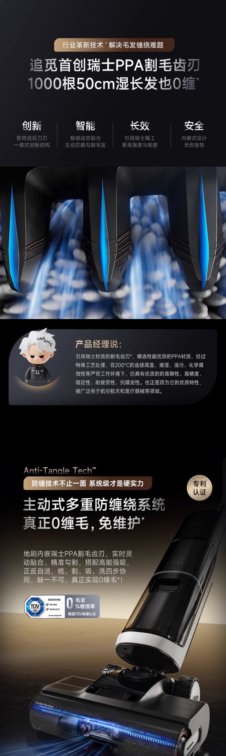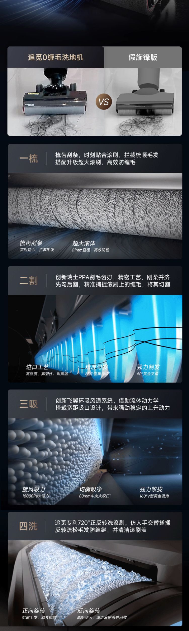 商品名称:追觅H20Ultra旋锋版躺平无线智能家用热水洗地机高温速干双贴边吸拖洗烘一体扫地机割毛式防缠绕吸尘器