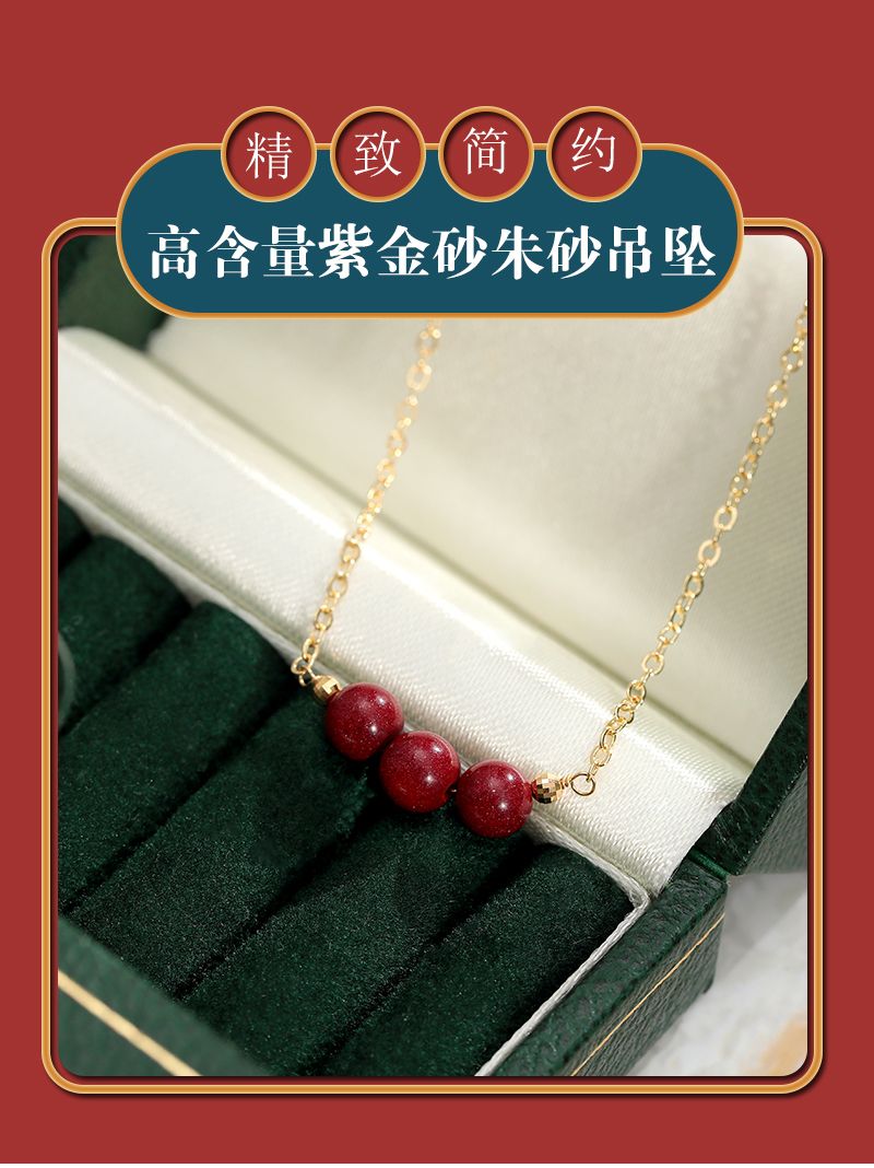 18K金镭射豆豆紫金砂朱砂吊坠【C209】