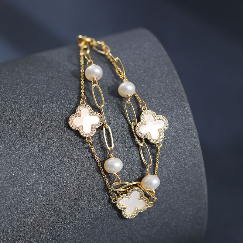 商品名称:四叶草珍珠多圈手链可调节链【B035】