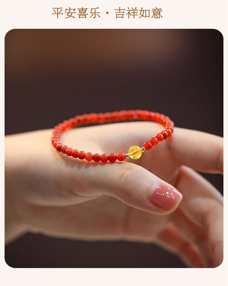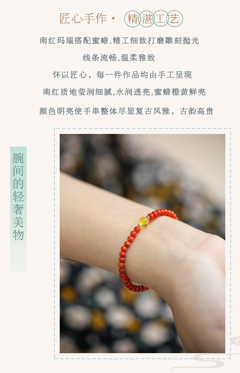 南红玛瑙搭配蜜蜡精致细手链