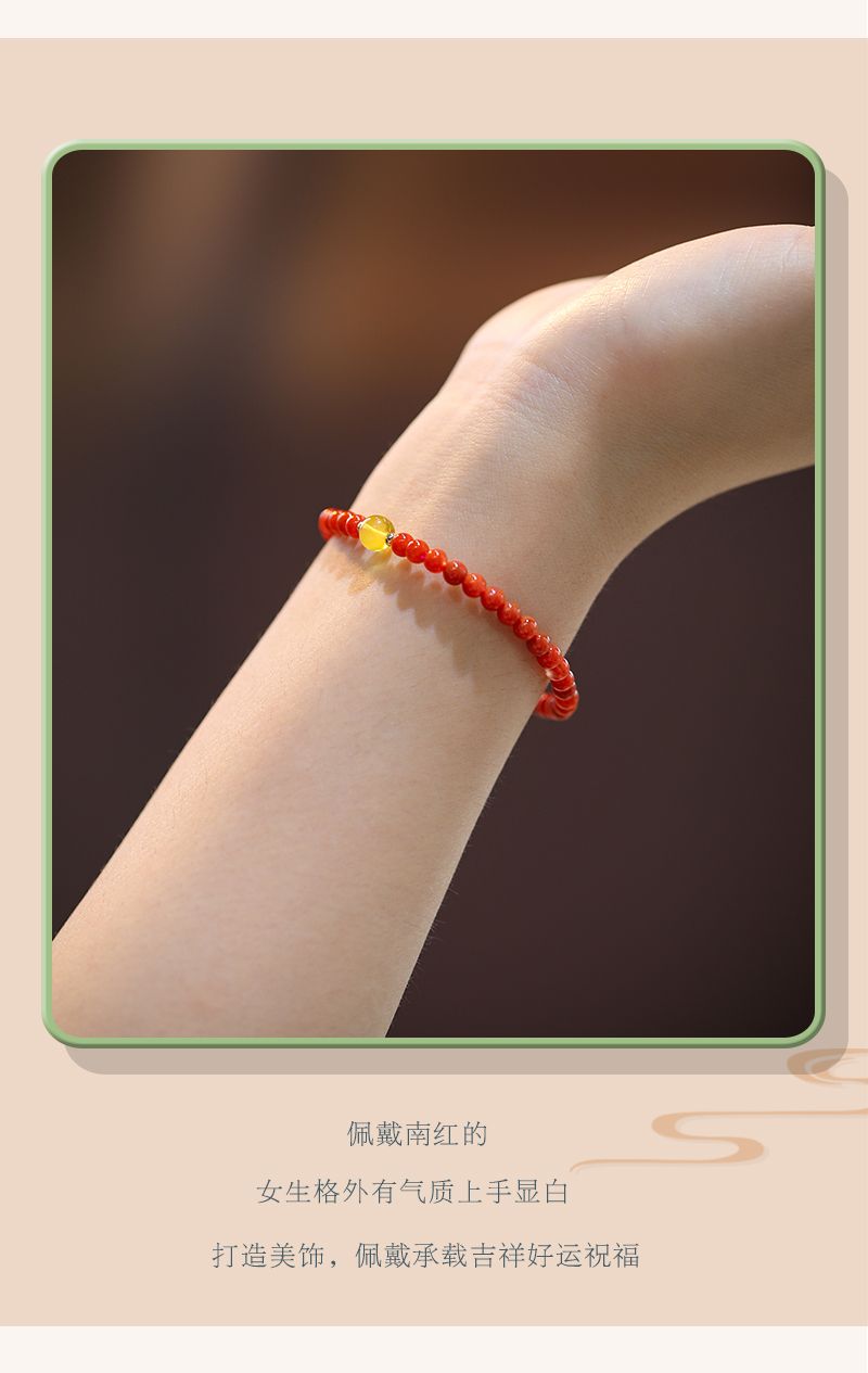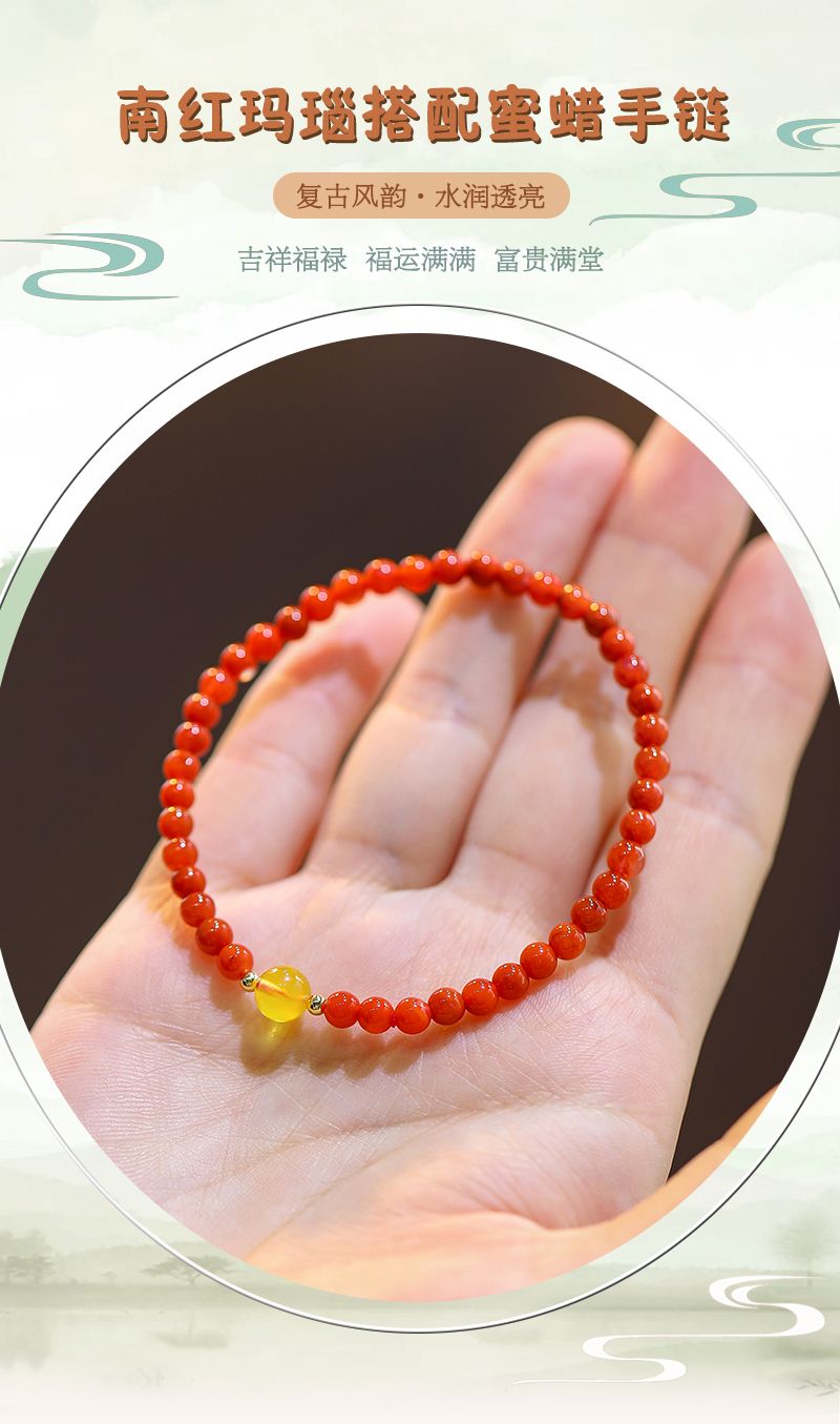 商品名称:南红玛瑙搭配蜜蜡精致细手链