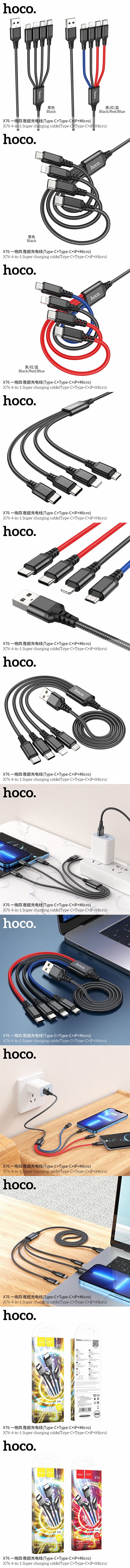 hoco. 一拖四胜超充电线X76(Type-C+Type-C+iP+Micro)