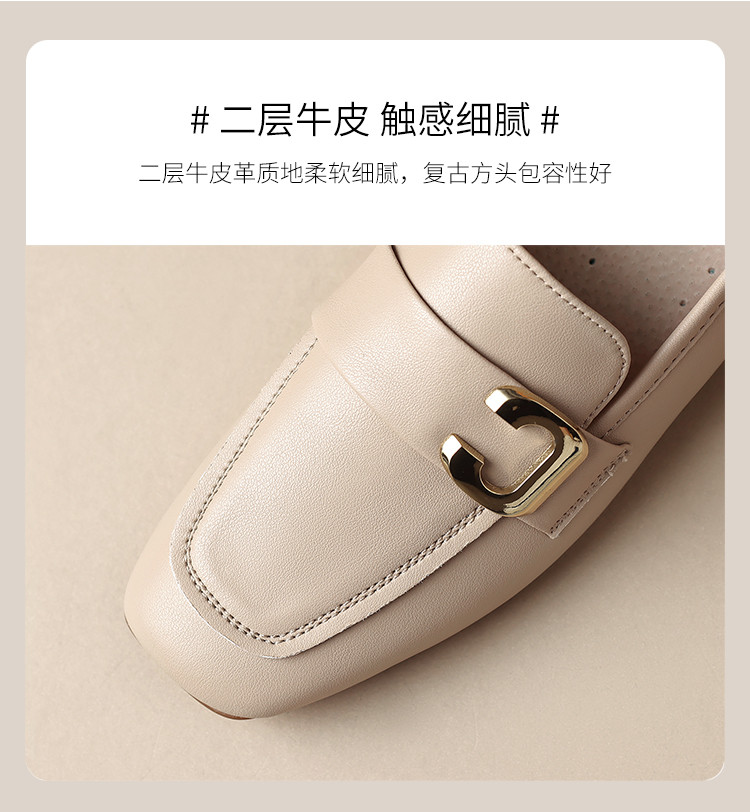 【牛剖层革】气质单鞋一脚蹬女鞋小皮鞋女平底鞋乐福鞋女鞋女单鞋 918400