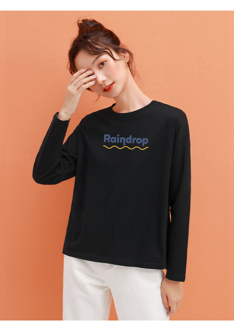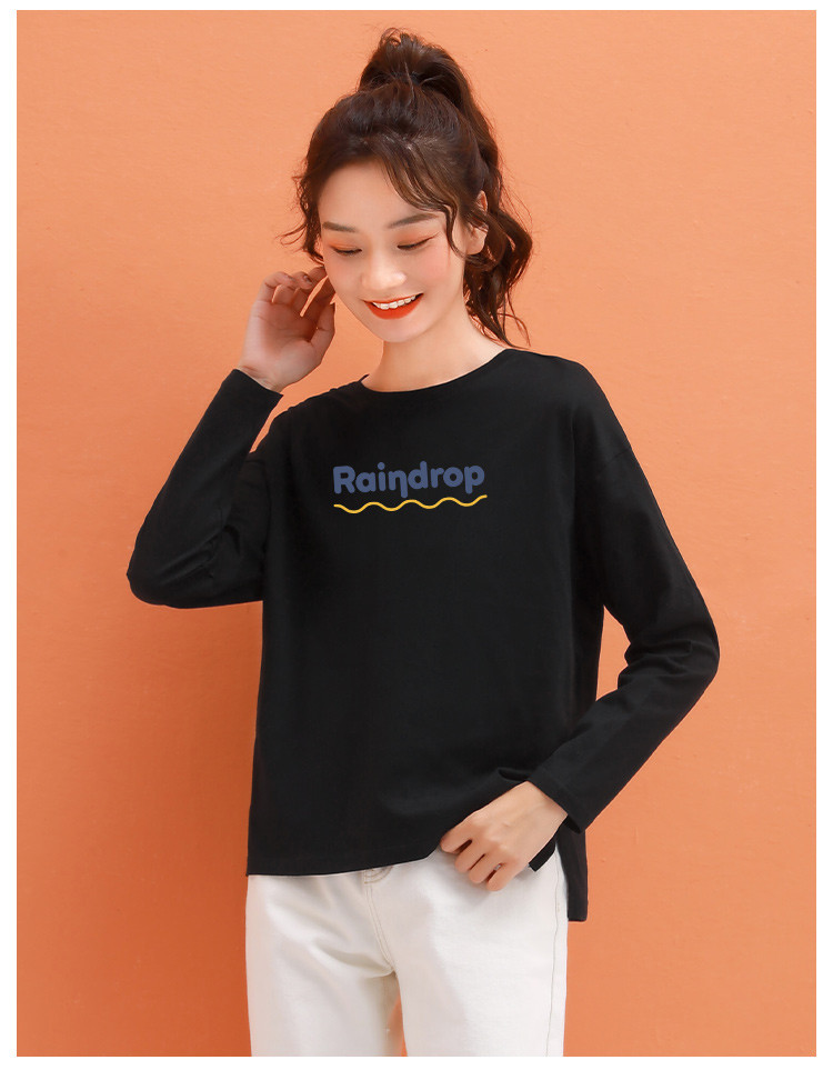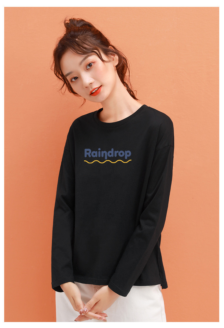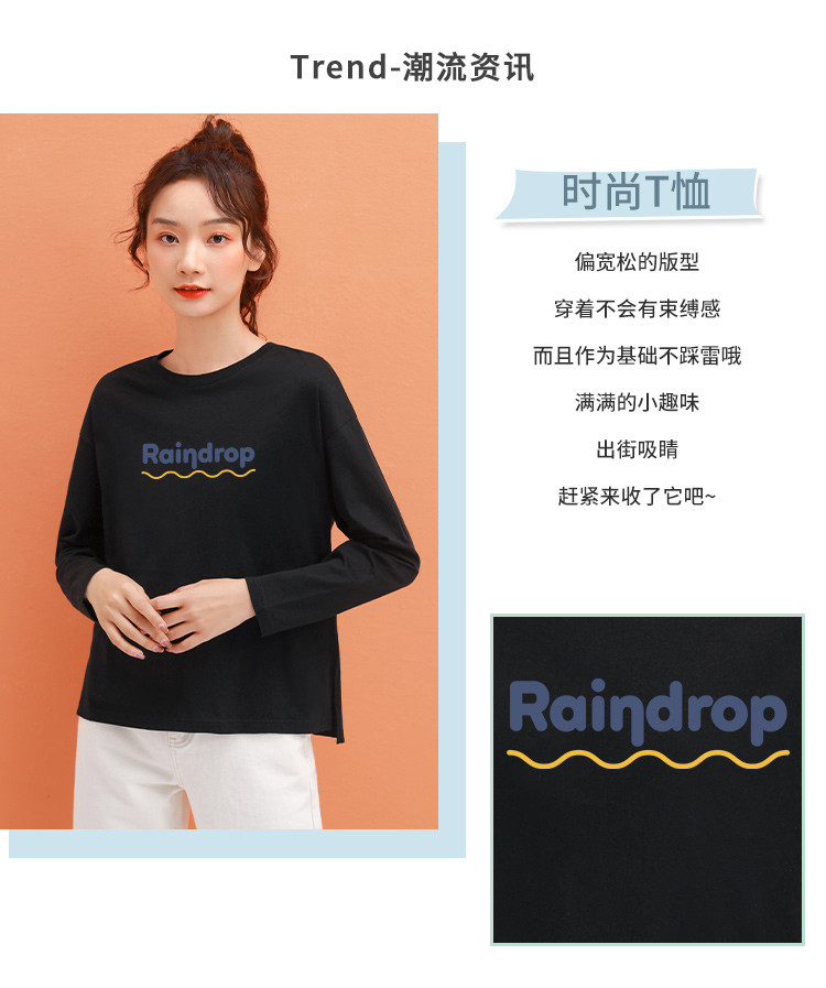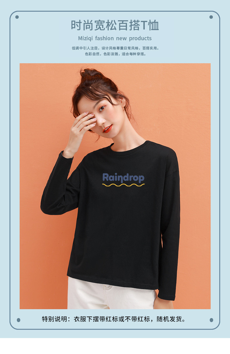 商品名称:米子旗春秋女式T恤宽松圆领字母印花百搭潮流长袖上衣女 113562